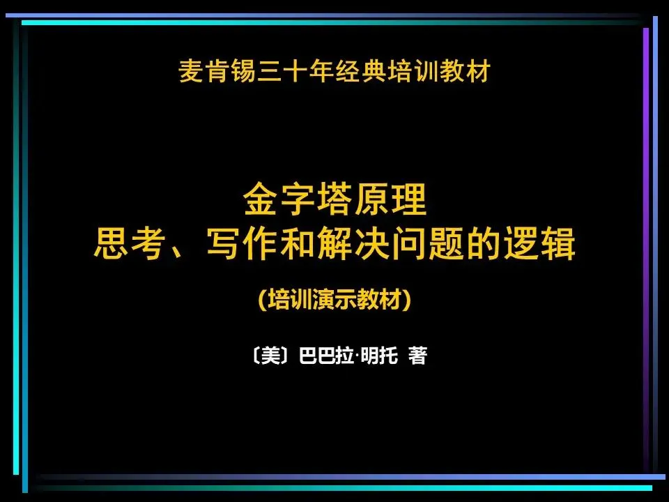 “逻辑是思维的利刃,唯有清晰的逻辑,才能让想法落地,让表达有力量。”麦肯锡三十年经典培训教材《金字塔原理》,由巴巴拉・明托所著,早已成为咨询行业乃至全球管理者的思维准则,更是哈佛商学院等顶尖学府的授课核心。它并非高深的理论,而是一套可落地、可复制的方法,能帮我们理清思考的脉络、搭建表达的框架、找到解决问题的路径,让混乱的思绪变得清晰,让低效的沟通变得高效。