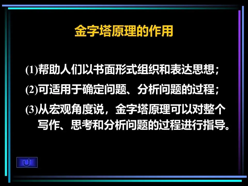 它的核心作用体现在三个维度:一是帮助人们以书面形式清晰组织和表达思想,让文字更有逻辑、更具说服力;二是适用于问题的确定与分析全过程,为复杂问题的拆解提供思路;三是从宏观层面指导整个写作、思考和分析问题的过程,让我们的行动更有方向。
