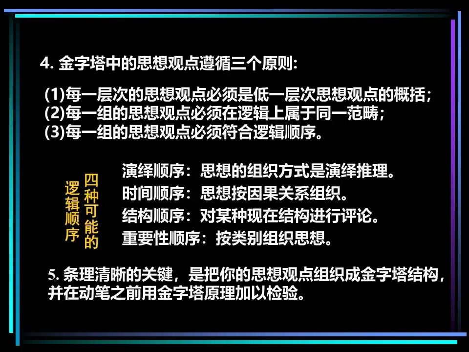 慧语1:条理清晰的核心,是让思想形成单一思想统领下的金字塔结构。