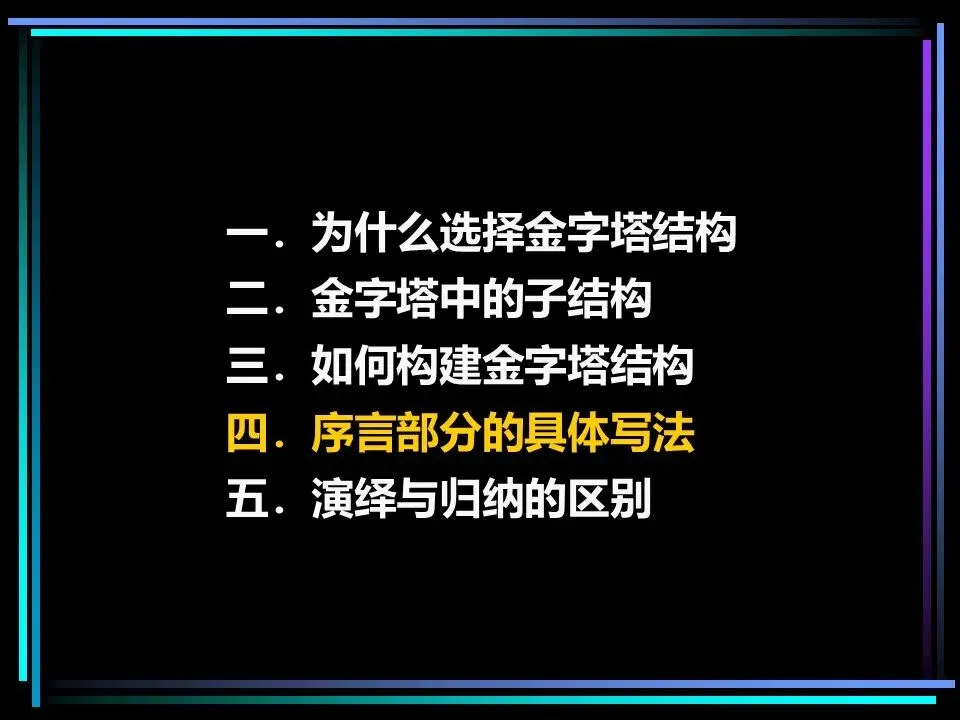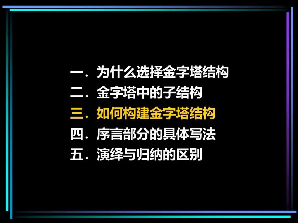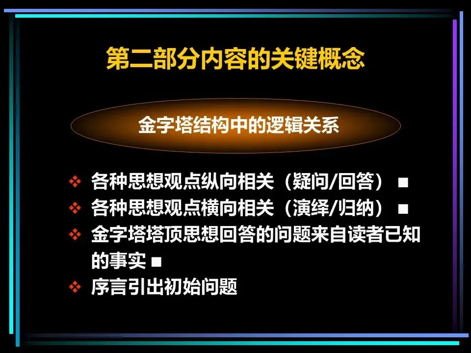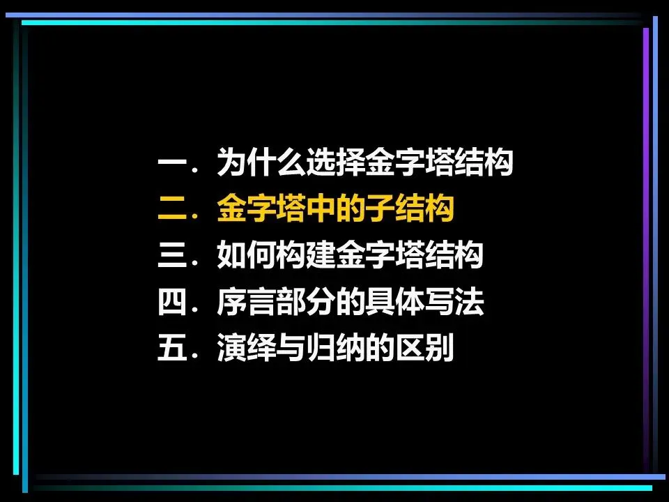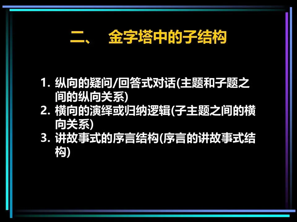金字塔结构并非单一的线性框架,而是由纵向、横向、序言三大子结构构成,三者相互配合,让思想的逻辑严丝合缝,让表达的节奏张弛有度。掌握这三大子结构,就能搭建起稳固的逻辑框架,让思考与表达不再混乱。