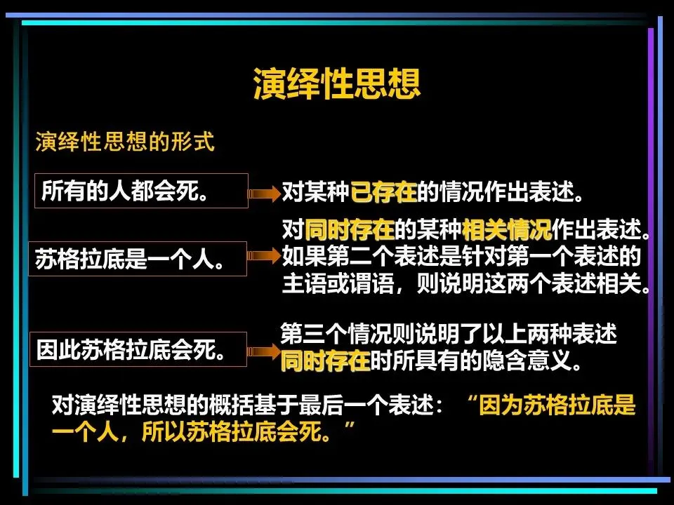 演绎法是经典的三段论推理:先提出大前提,再补充小前提,最后得出结论。比如“所有人都会死(大前提),苏格拉底是人(小前提),因此苏格拉底会死(结论)”,这种方式逻辑严密,适合需要严谨论证的场景。