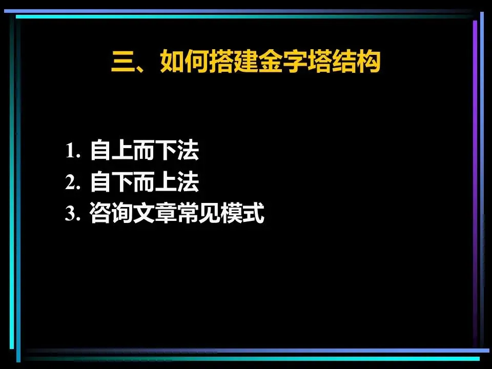 搭建金字塔结构,有自上而下和自下而上两种核心方法,前者适合主题明确的场景,是新手的首选;后者适合思路混乱、主题尚不清晰的场景,能帮我们从零散的想法中提炼核心。两种方法各有步骤,照做即可快速上手。