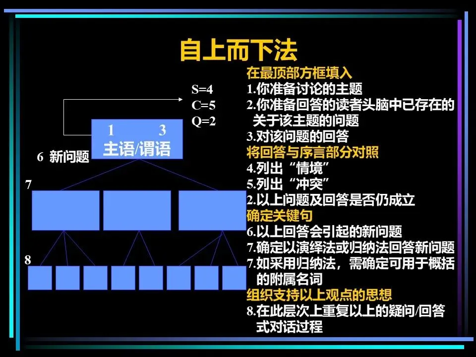 这是最符合金字塔原理核心的方法,核心是结论先行,从顶端的核心结论出发,逐步拆解支撑论点,全程贴合读者的疑问。具体步骤为:
