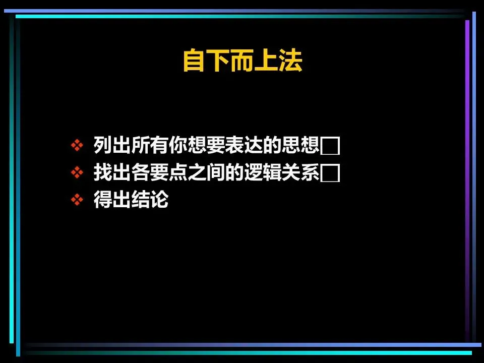 当我们思绪混乱,无法直接得出核心结论时,可采用自下而上法,从零散的想法中梳理逻辑、提炼核心。具体步骤为: