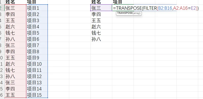 第三步,将数据转置,变成一行,横向嵌入到单元格中