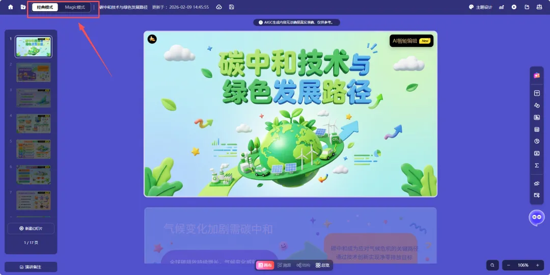 最近看到ChatPPT接入了Nano Banana Pro,还悄悄上线了一个叫 “Magic创作模式” 的功能。简单试用了一下,感觉它解决了一个挺实际的麻烦:AI生成的PPT终于可以“指哪改哪”,而不是动不动就得整页重来了。