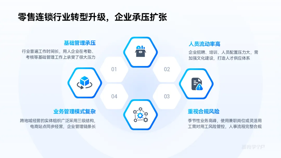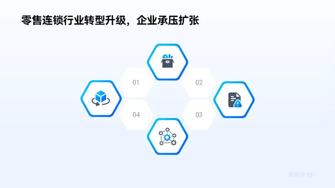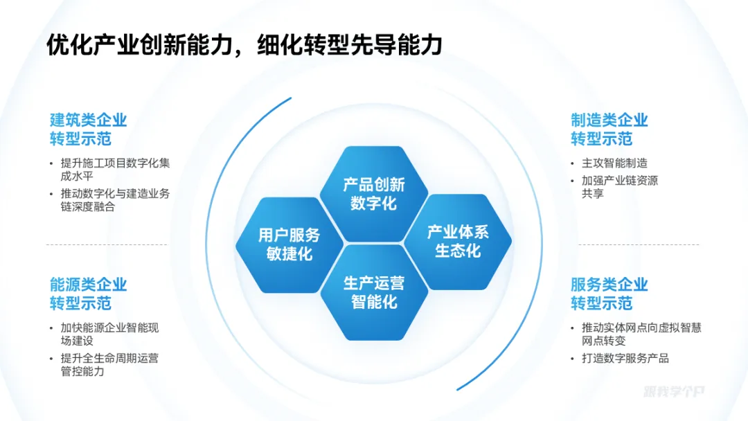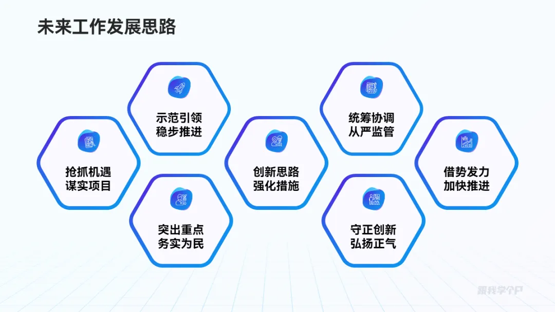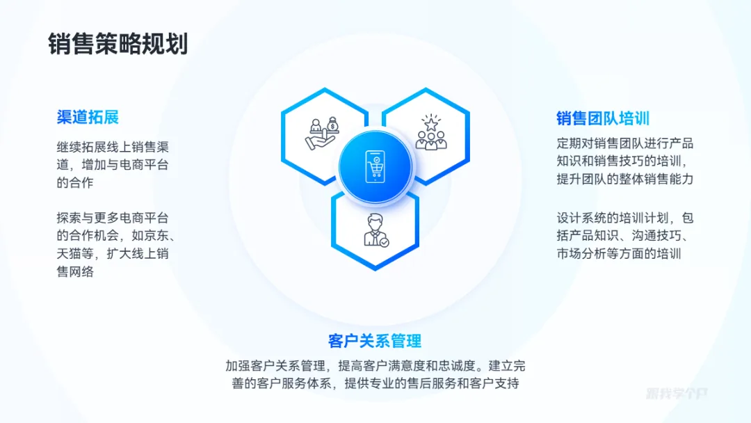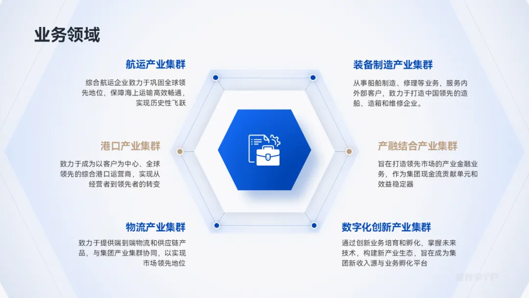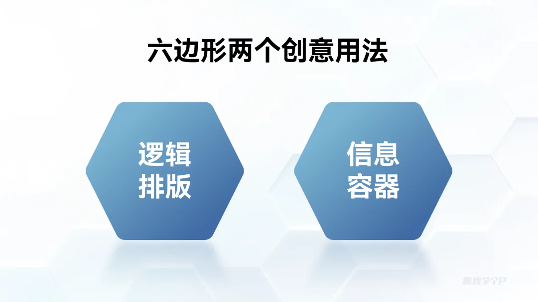 相比于圆形和矩形,六边形用于并列逻辑关系排版更灵活,范围也更广。