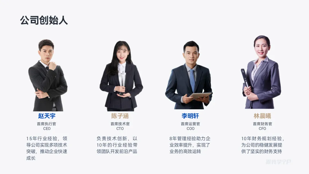 放上人物图片和文字信息,错落布局,动感更强: