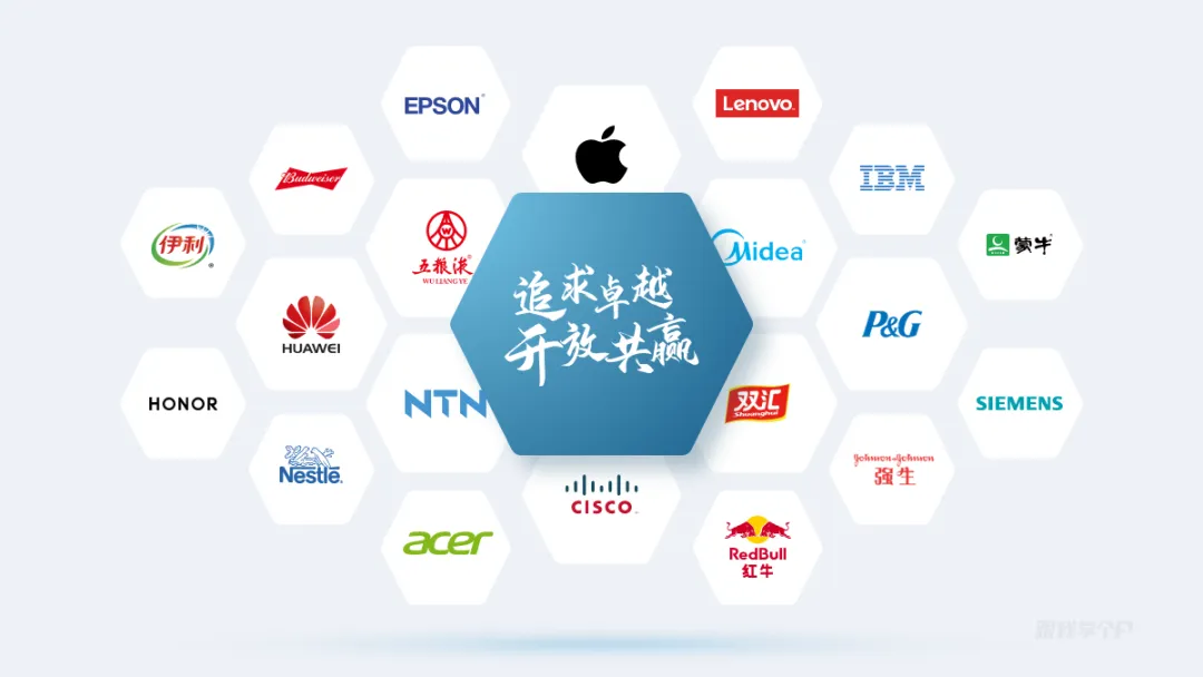 当然,如果要展现合作伙伴数量很多,还可以用六边形铺满页面,做成蜂窝的样式: