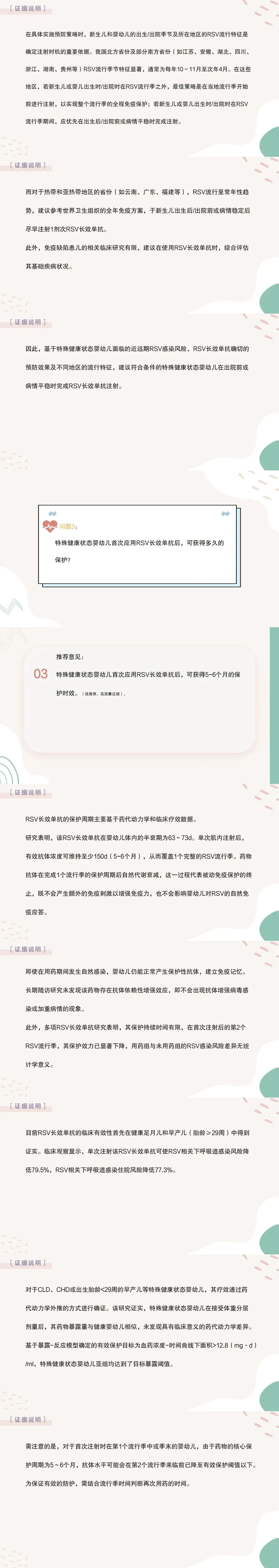 3.特殊健康状态婴幼儿首次应用RSV长效单抗后,可获得5~6个月的保护时效。