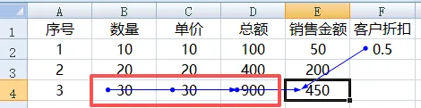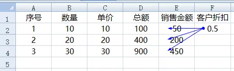 你有没有注意过,在Excel的菜单栏中有这样一组功能。“追踪引用单元格”与“追踪从属单元格”。它们的核心作用就是通过箭头标注来直观的了解引用关系。比如,公式结果受哪些单元格影响;某个单元格又被谁引用了。追踪功能可以帮助我们理清复杂公式的嵌套逻辑,进而快速定位错误根源。简单来说,公式追踪功能的核心价值就是,把看不见的引用关系变成了可以看见的箭头。追踪引用单元格的作用是,显示当前单元格的公式引用了哪些数据源(单元格/区域),箭头从数据源指向公式单元格。在E4单元格中的销售金额=D4中的总额*F2中的客户折扣选中E4单元格,然后点“追踪引用单元格”,就能得到下图结果。蓝色箭头,由D4、F2两个单元格指向E4。刚好对应其公式中涵盖的两个单元格。在这个结果下,我们继续点“追踪引用单元格”,箭头就会继续追踪到下一层的数据源。如下图:对比前一张图,圈起来的部分就是第二次追踪到的结果。如果B4或C4单元格中仍然含有公式,可以继续点击“追踪引用单元格”进行下一层级的追踪。“追踪引用单元格”要求单元格中包含使用有效引用的公式,否则会出现错误提醒。此功能可以帮助我们排查公式引用是否错位、理清嵌套公式的底层数据来源。追踪从属单元格的作用是,显示哪些单元格的公式引用了当前单元格,箭头从当前单元格指向从属单元格。选中F2单元格,点击“追踪从属单元格”,就能看到哪些单元格使用了此折扣。同“追踪引用单元格”一样,再次点击可继续追踪下一层的从属关系。这个功能一般用于单元格修改数据之前,提前确认修改后会影响哪些公式结果,避免误改造成的批量错误。使用追踪功能后,工作表中会出现一系列的箭头,影响视觉体验。而这些追踪箭头,仅作为一种标注存在,即不修改公式也不影响计算结果。不需要时可以放心清除。在追踪功能按钮下方有一个“移去箭头”,可快速清除工作表中的所有箭头。若只想清除部分箭头,可点击“移去箭头”右侧下拉箭头,根据需要选择“移去引用单元格追踪箭头”还是“移去从属单元格追踪箭头”。看到这里,是不是已经了解了公式追踪功能的使用。还想了解哪些内容?欢迎留言~我们每周,一见。每周一,见。但下周开始就放年假了,Excel内容停更2周,节后加吧~PS:Excel不同版本菜单栏略有差别,WPS差别最大,但只要学会操作方法,其他都不会是问题。