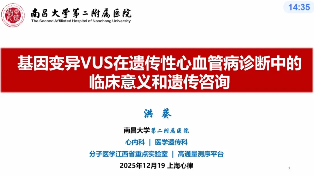 洪葵:基因变异VUS在遗传性心血管病诊断中的临床意义和遗传咨询(28P)