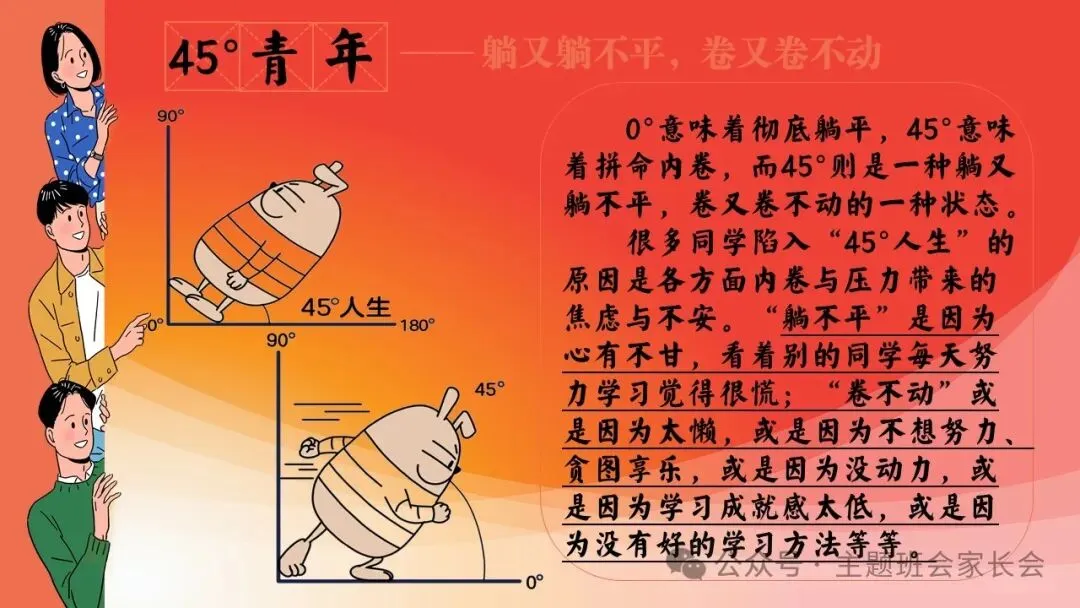 励志主题班会ppt课件:拒绝躺平,不做45°青年!(含发言稿、视频)