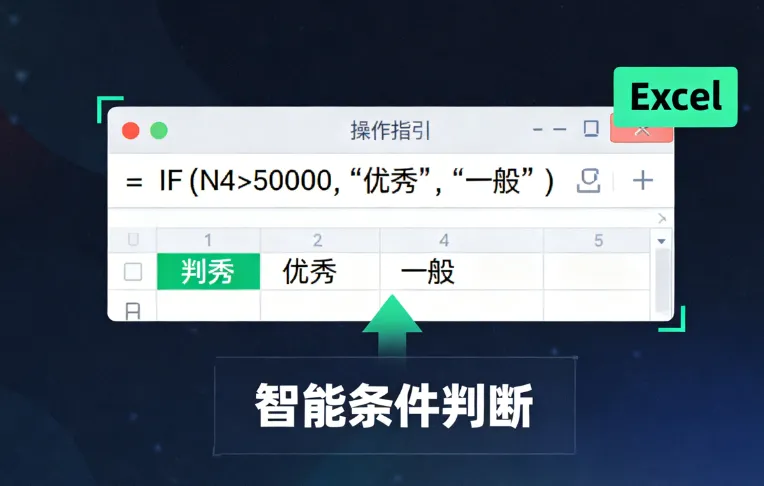 5. IF函数:智能判断这是你的第一个逻辑函数!可实现条件判断。例如=IF(N4>50000,"优秀","一般"),能自动将大于5万的销售额标记为“优秀”。