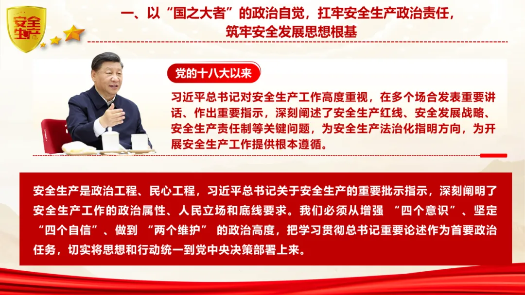 以“国之大者”的政治自觉,扛牢安全生产政治责任,筑牢安全发展思想根基