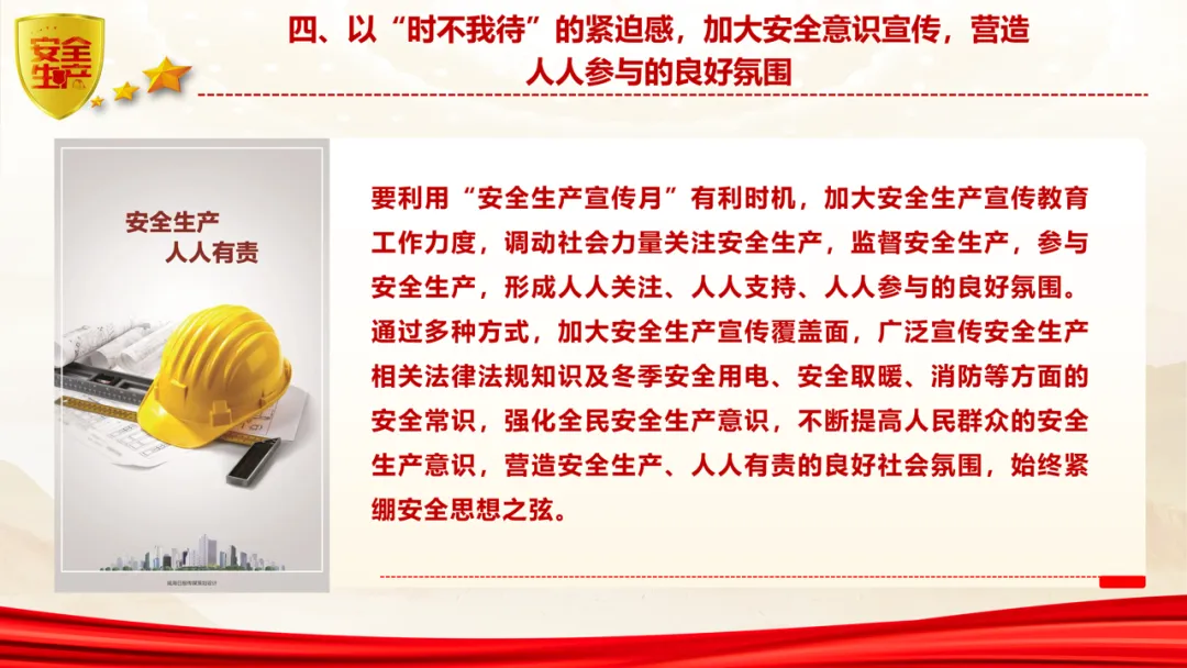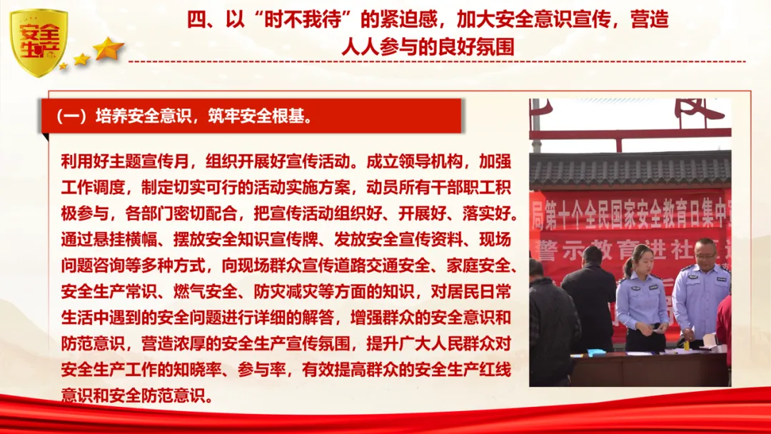 以“时不我待”的紧迫感,加大安全意识宣传,营造人人参与的良好氛围