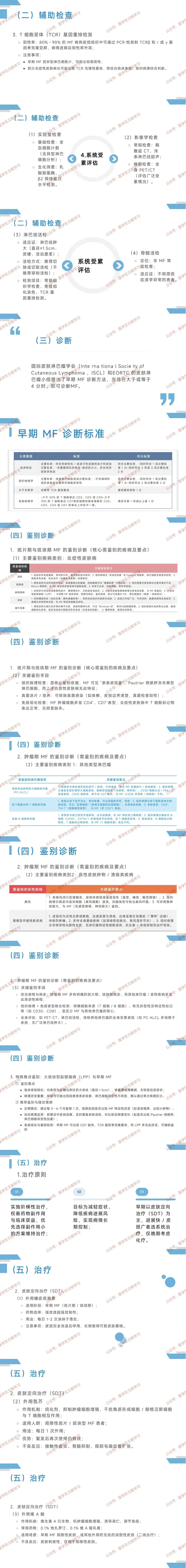 - 其他:体外光分离疗法(ECP,外周血受累者)、异基因造血干细胞移植(多线治疗抵抗者)。