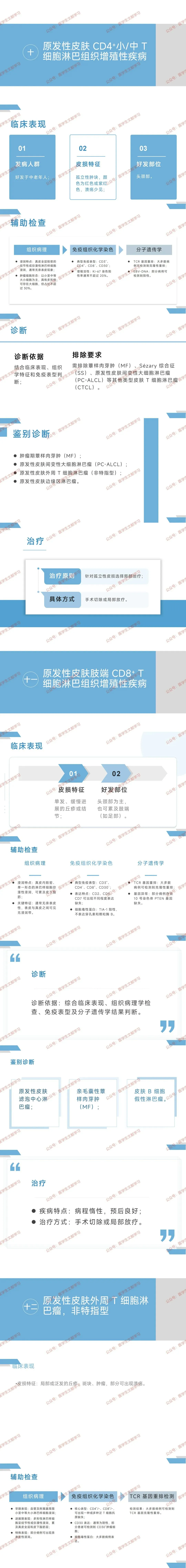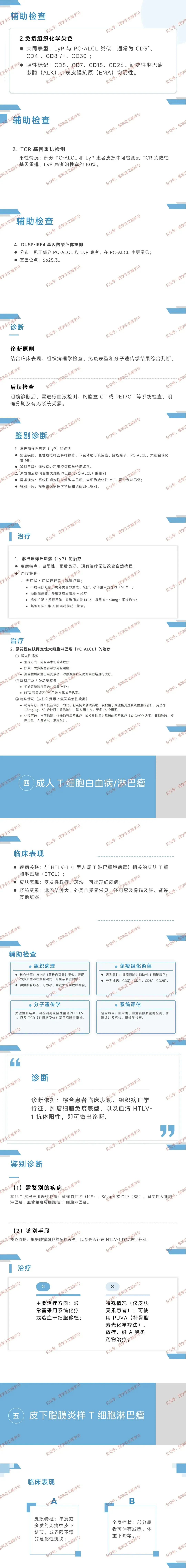 - 诊断:采用 ISCL-EORTC 标准,总分≥4 分确诊(临床特征 1-2 分 + 病理 1-2 分 + TCR 重排 1 分 + 免疫病理 1 分)。