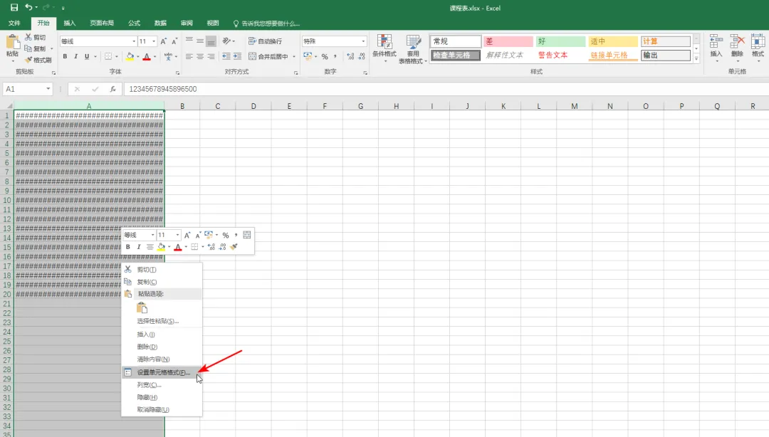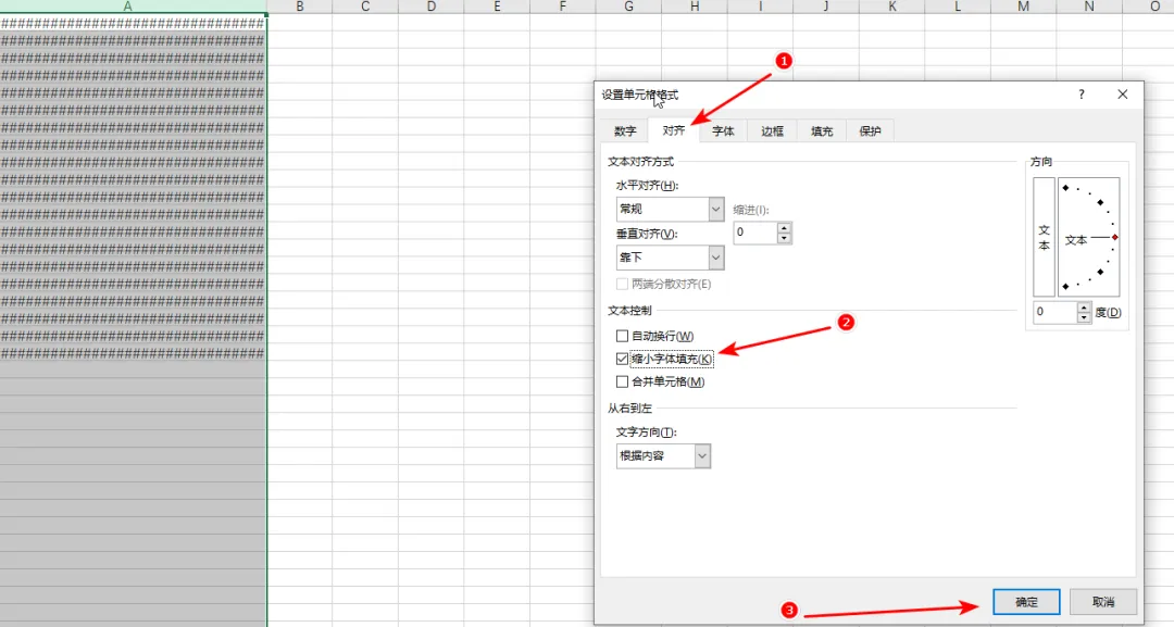 应用场景:在Excel中经常遇到,单元格宽度不够会显示一堆井号,导致无法看清楚内容1. 比如有输入数据,当宽度足够的时候,可以正常显示2. 把单元格宽度调小,就什么看不出来,只能看到一堆井号3.1 把鼠标放到字母A的位置,当鼠标变为向下的箭头的时候,点击鼠标左键,就表示选中了整列3.2 在选中的列右键,然后选择“设置单元格格式”3.3 在弹框“设置单元格格式”中选择“对齐”,然后勾选“缩小字体填充”,最后点击确定按钮5. 让宽度更加小还是可以显示全部,不过看的不太清楚了注意:打印的时候不要使用这种方式,因为可能会导致和其他表格字体大小不一样