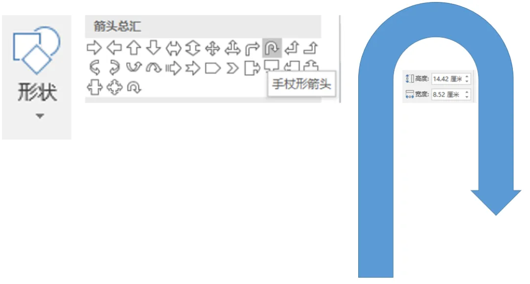 1. 插入 “手杖形箭头” 形状(PPT自带形状之一)