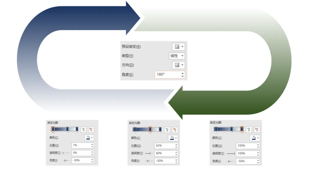 · 建议使用同色系双色渐变,如深蓝到浅蓝