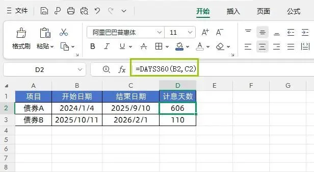 十一、DAYS360函数:按每年360天计算