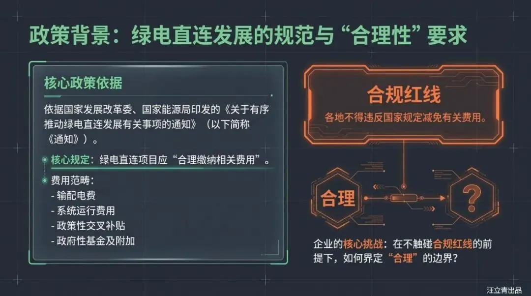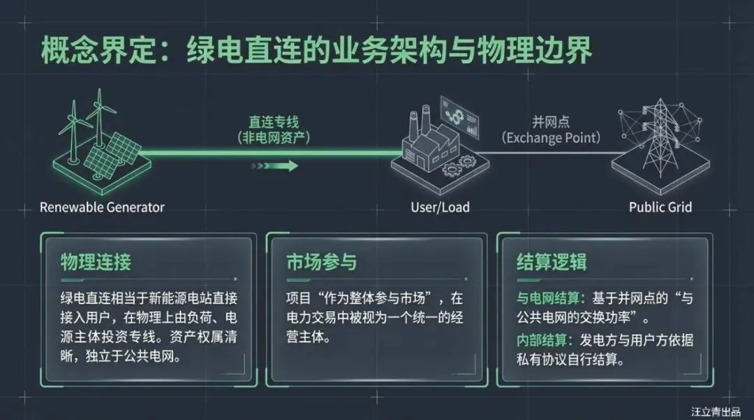 这份报告直击绿电直连项目的“生死命门”——费用结算,为您揭示了如何在政策合规的框架下,通过精准的“算账”挖掘出巨大的利润空间。在“650号文”引发的市场狂欢后,行业面临的最大困惑就是:绕开电网后,原本交给电网的过路费到底还要不要交?这份分析报告给出了定心丸:绿电直连不仅是物理上的直连,更是费用的“解绑”。 核心逻辑在于将绿电直连项目定义为“绿色自备电厂”,这意味着它不再是传统的电网用户,而是享有特殊待遇的新型市场主体,这一身份的界定直接决定了投资回报率的测算模型。