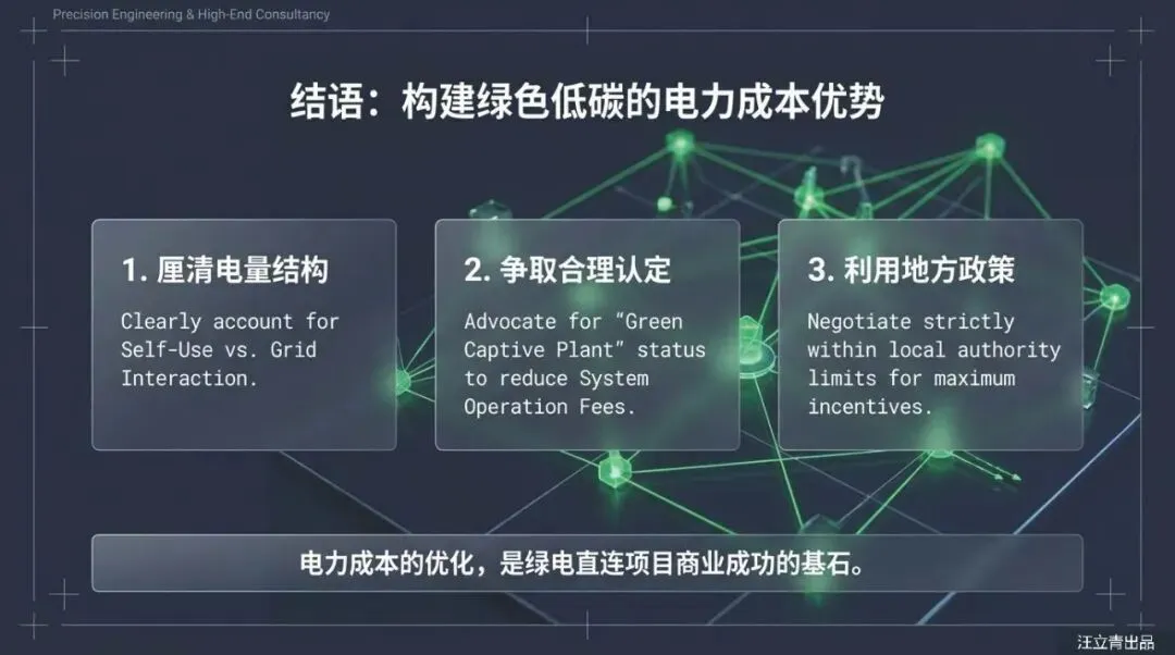 最后,报告点出了“地方事权”这一潜在的政策红利。虽然国家规定不得违规减免,但对于属于地方事权范围内的费用标准,各地政府拥有合法的减免权限。这意味着,未来绿电直连项目的竞争,将不仅仅是技术和资源的竞争,更是对各地政策解读能力与议价能力的博弈。谁能率先吃透这份费用清单,利用“绿色自备电厂”的身份争取到系统备用费和交叉补贴的减免,谁就能在万亿绿电市场中构建起不可撼动的成本护城河,将政策红利真正转化为实打实的真金白银。