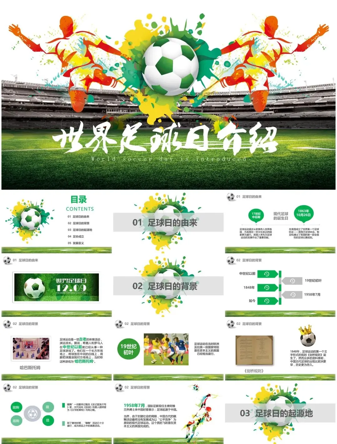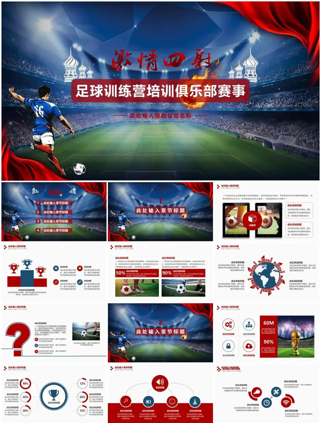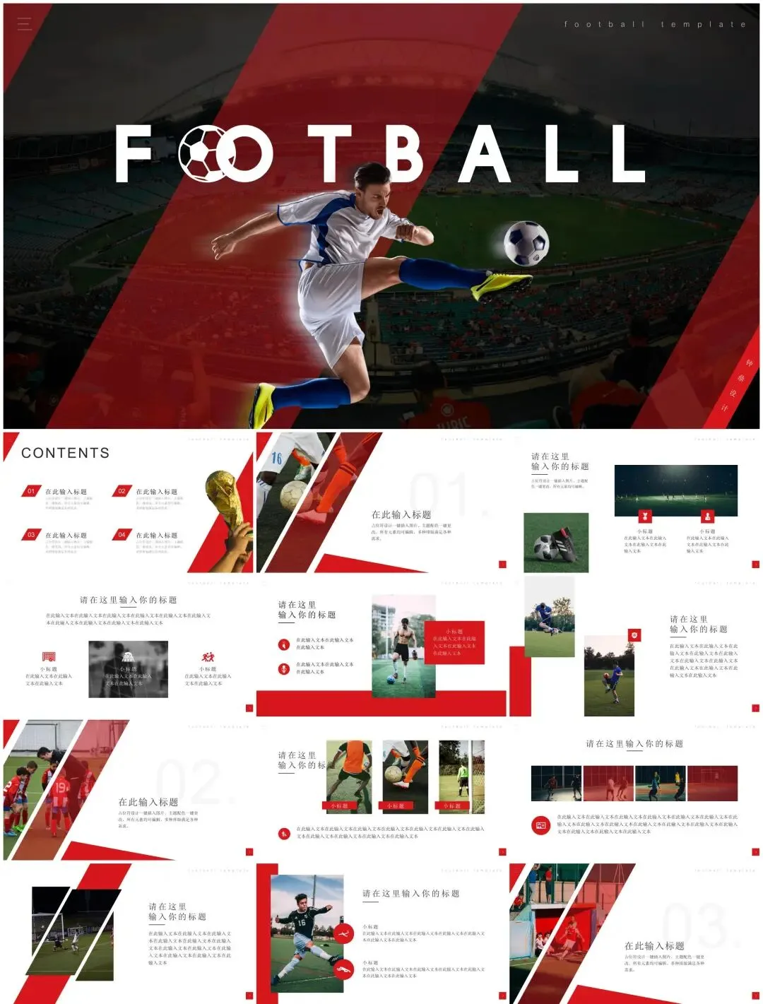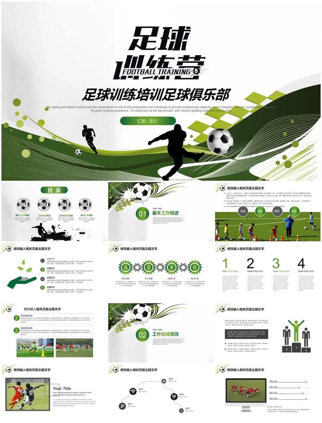 小man精选【48套】足球主题PPT模板,涵盖战术解析、赛事回顾、俱乐部介绍等多种场景,设计动感十足、风格多样,助你轻松打造吸睛又专业的足球主题演示!