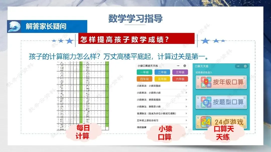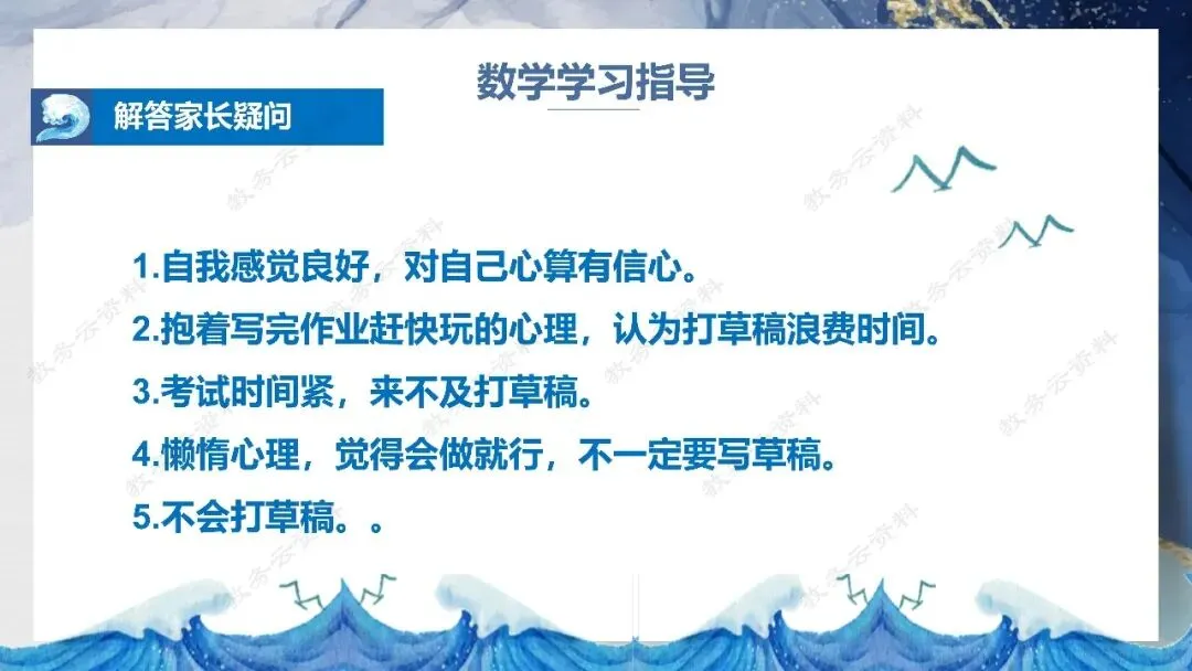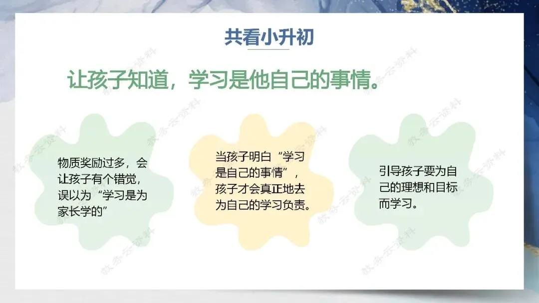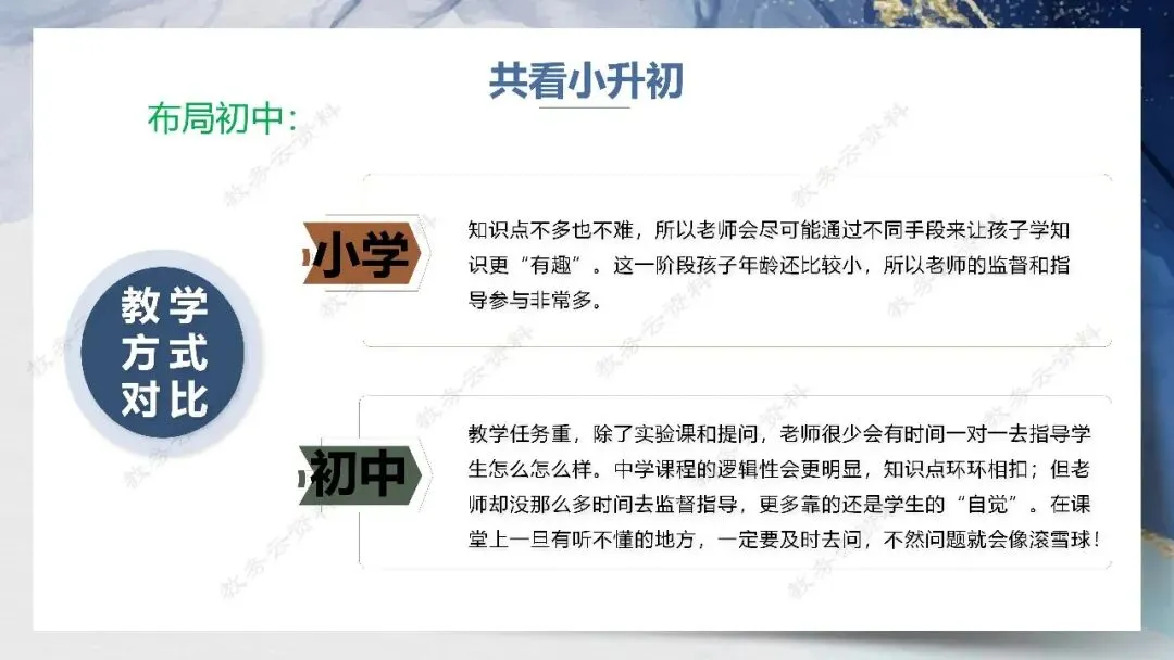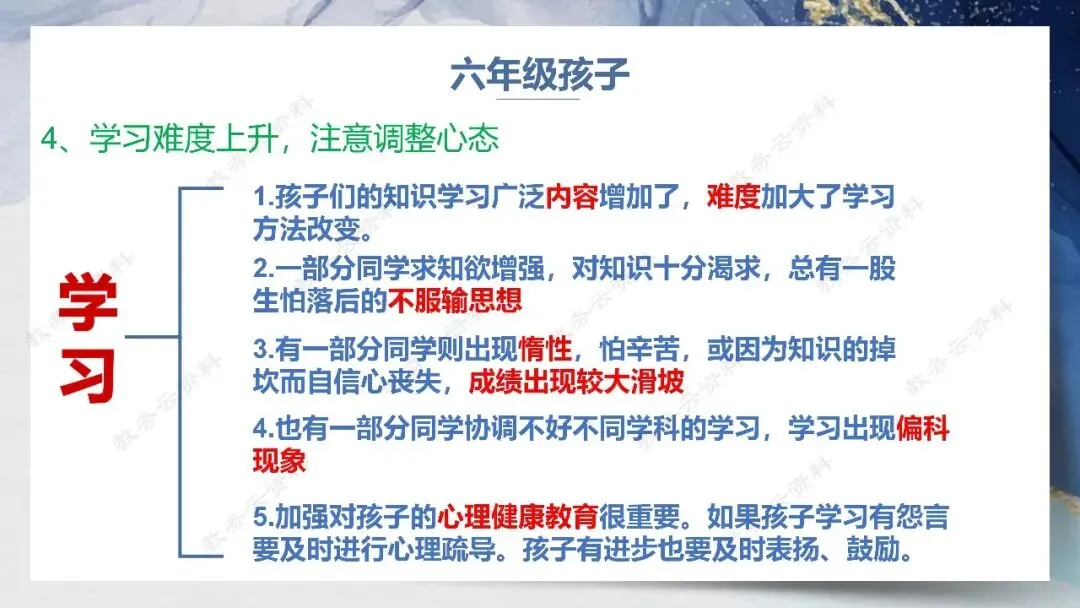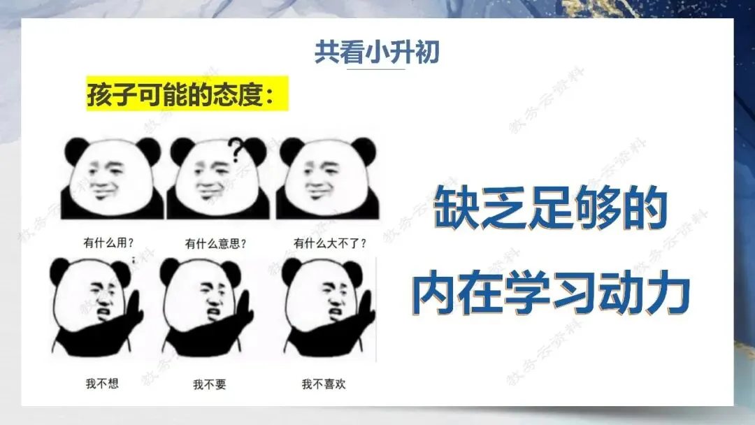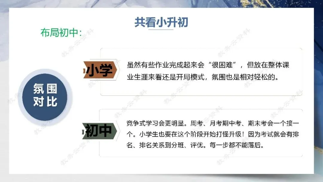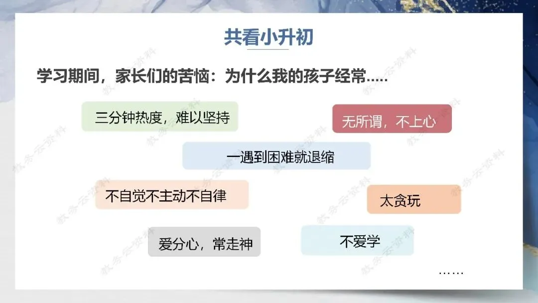 很高兴在这与您相遇,如果您是一位班主任老师,每天除了应对繁重的教学工作,还要加班整理班级、教务、教研、课件PPT资料,请关注下方的“教务云资料”,让我们风雨同路、一起成长!今天分享的是(小升初)六年级春季学期数学开学家长会ppt课件,主题是《苦在当下,赢在未来》。课件PPT一共64页,配套班主任兼数学老师发言稿。(文末有课件资料的获取方式)点击下方图片,打开小程序,付费查看,可自助下载资料,课件下载后无水印、可编辑、可修改!