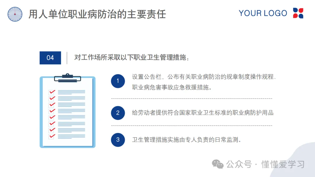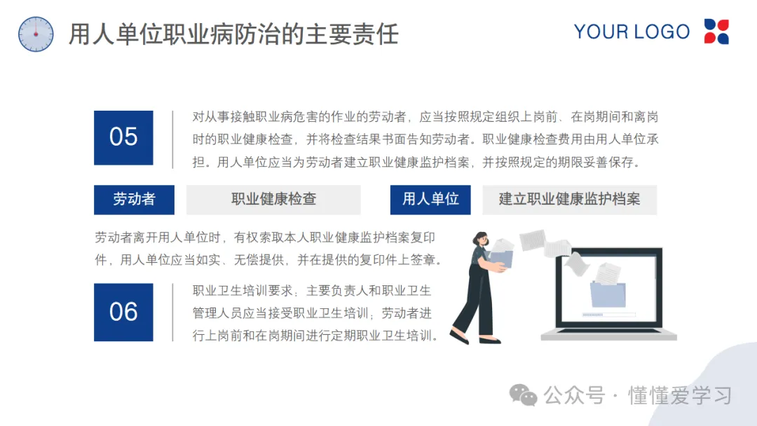 用人单位作为职业病防治的第一责任人,其责任重大且全面。这包括但不限于:建立健全职业病防治管理体系,明确各级管理人员的职责;制定并执行职业病防治计划和实施方案,确保工作场所符合职业卫生标准;为劳动者提供必要的职业病防护设施和个人防护用品;定期组织劳动者进行职业健康检查,及时发现并处理职业病危害;开展职业病防治知识培训,提高劳动者的自我保护意识和能力。