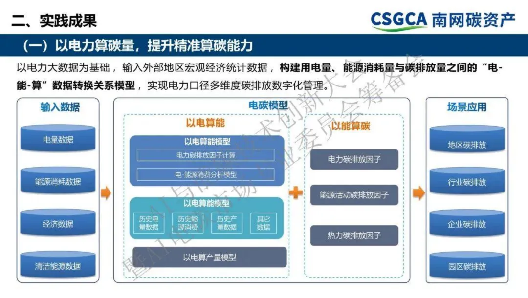 | ① 浙江“电碳一张图” | 依托省级能源大数据中心,汇聚融合电、煤、油、气等数据,首创“电碳一张图”,建成“节能降碳e本账”体系。 | 电:电力大数据。碳:构建电-碳分析模型,实现高频监测与精准测算碳排放。算:大数据中心处理,60余项数据产品,服务政府与企业决策。 |