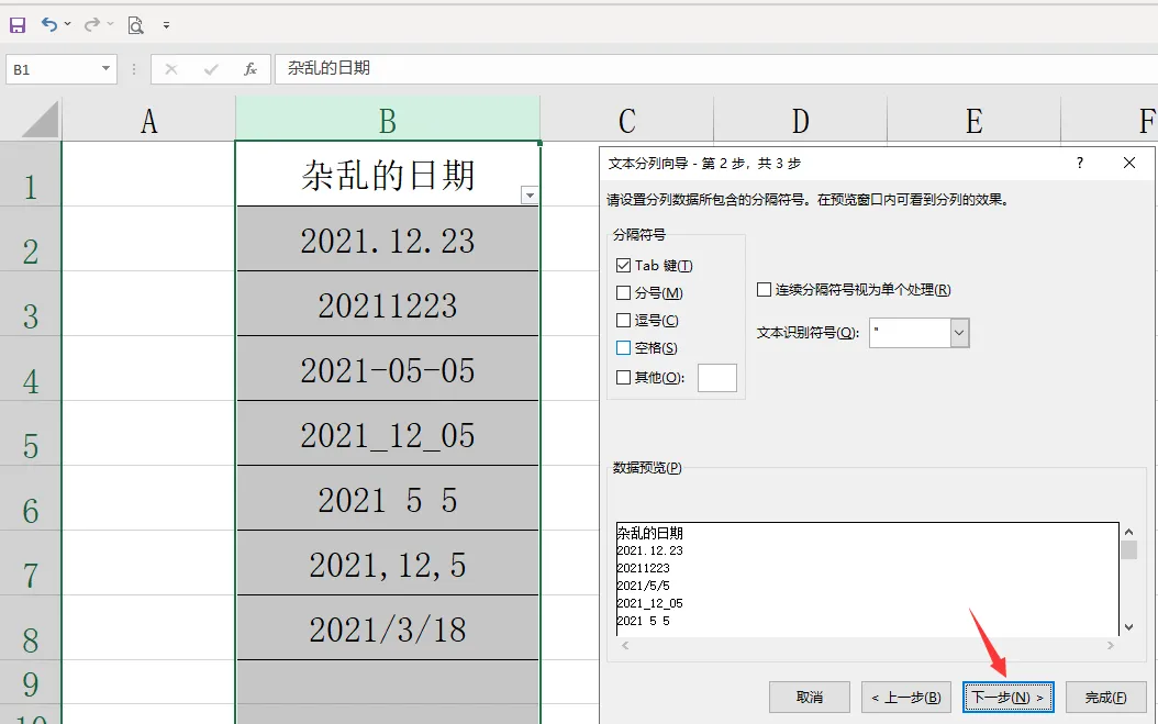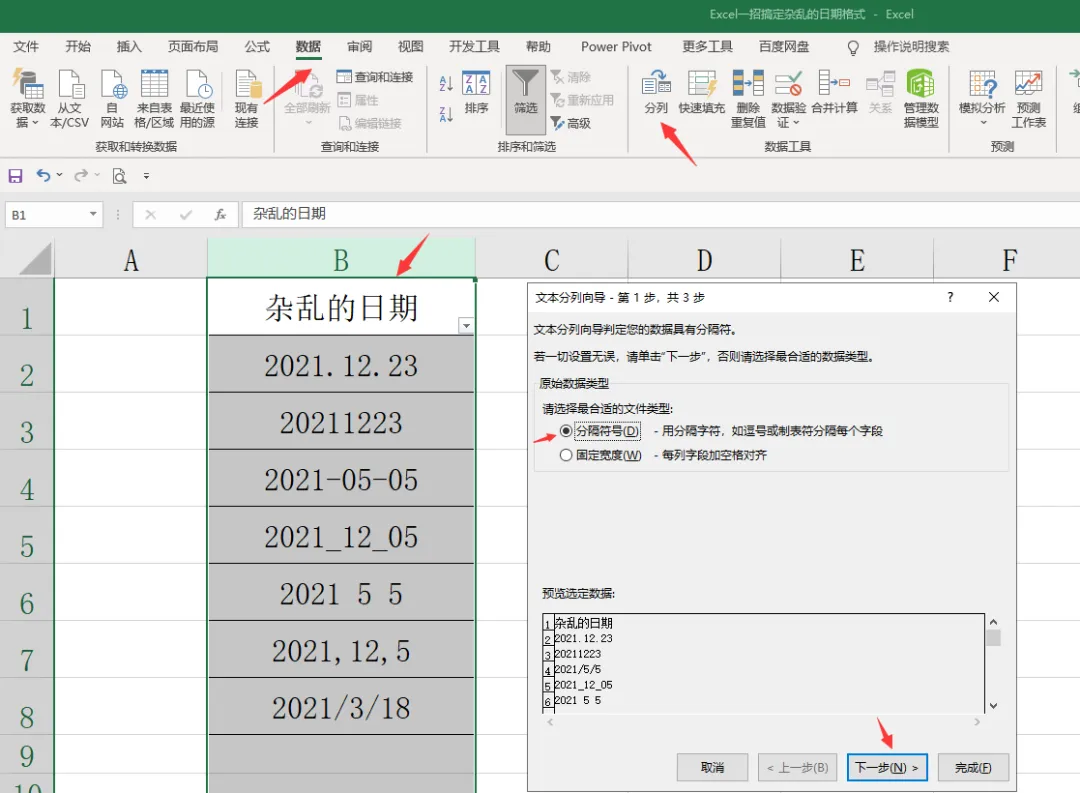 一、利用数据分列功能,快速整理日期格式