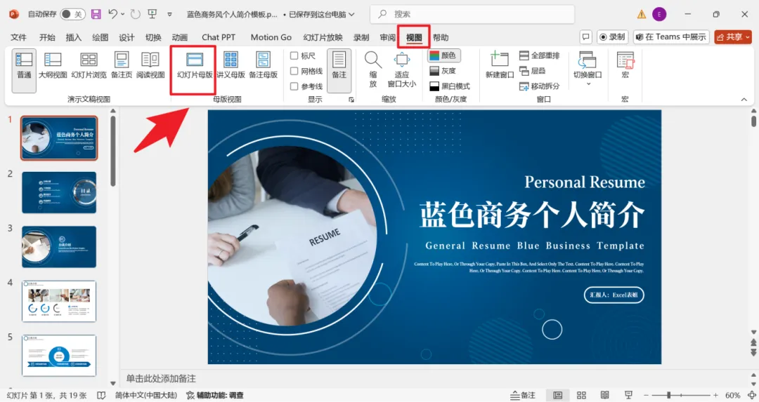 要修改PPT母版,首先得找到它。打开PPT文件,点击菜单栏上的“视图”选项卡,在下拉菜单中选择“幻灯片母版”。