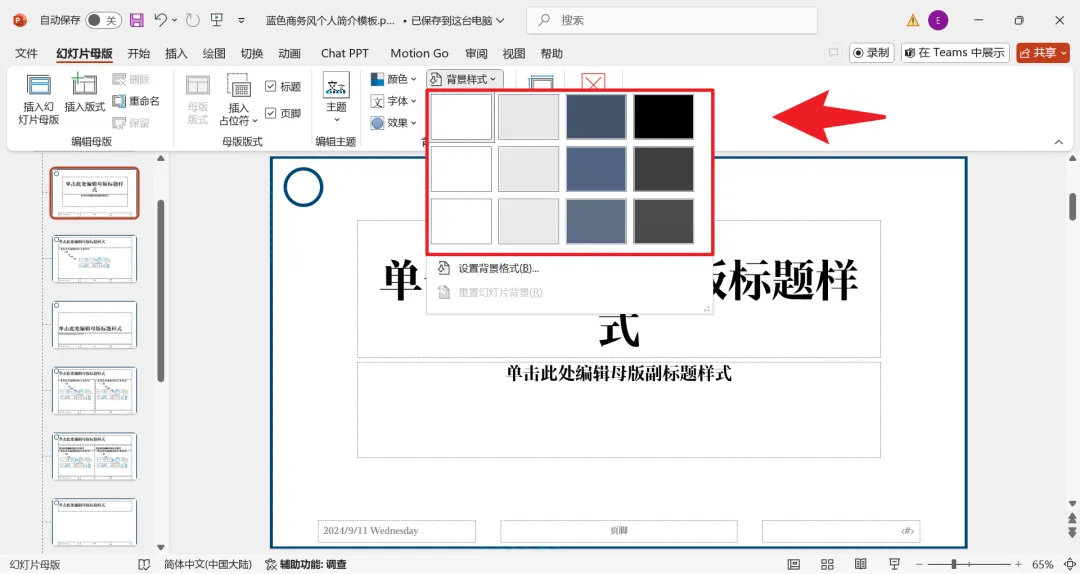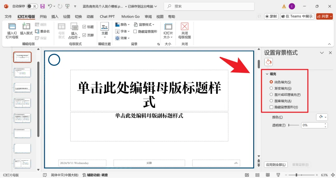 背景是PPT给人的第一印象,修改母版背景能让整个演示文稿焕然一新。在母版视图中,选中想要修改的母版。