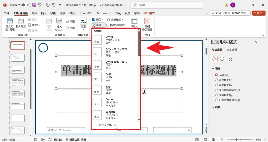 此时,会发现所有幻灯片都已经自动应用了修改后的母版样式,无需再逐页调整。这一功能极大地提高了工作效率,让PPT制作变得更加轻松快捷。