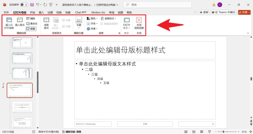 在这个视图中,可以对母版进行各种修改,而无需逐页调整。