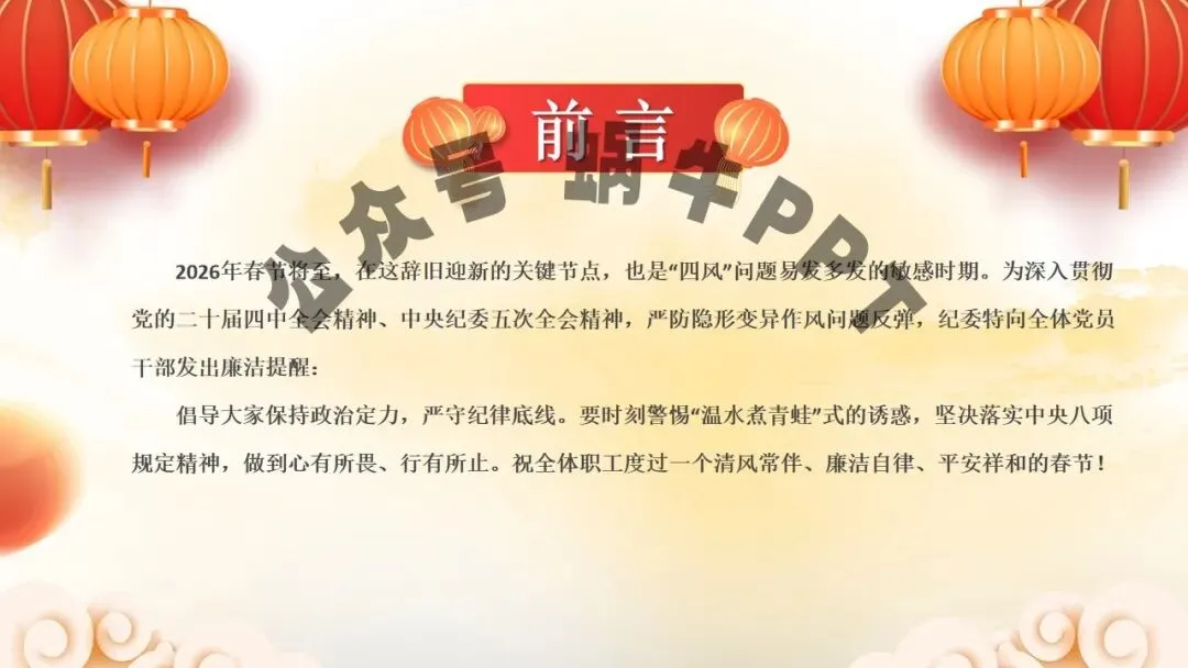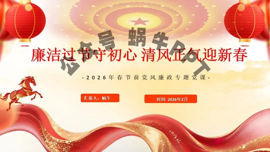 >【PPT+讲稿】2026最新 春节前党风廉政教育专题党课 廉洁过节守初心 清风正气迎新春