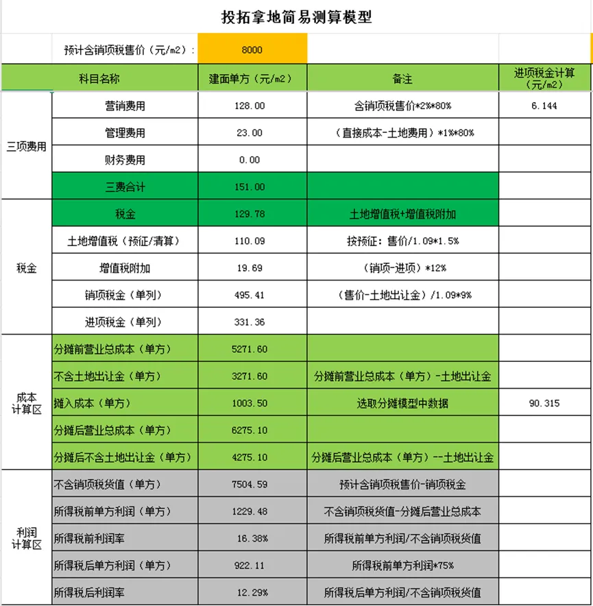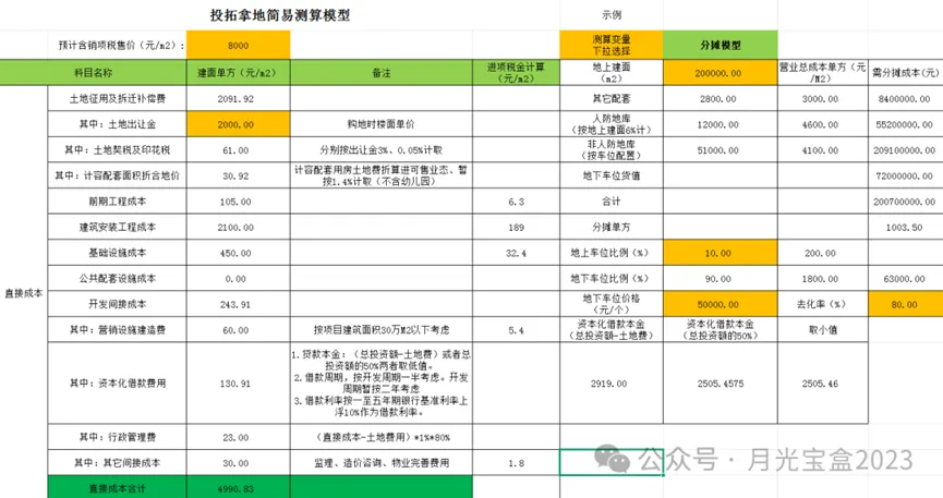 “投拓拿地简易测算模型”,一张Excel表,告别复杂流程,一人也能快速决策!