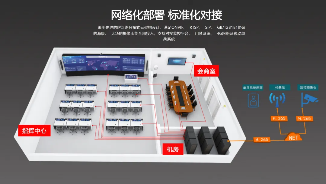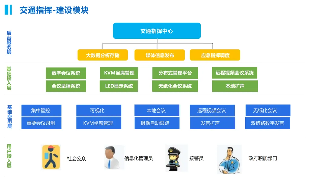 此外,方案还注重系统的兼容性与扩展性,支持多品牌、多协议设备的接入,确保与上下级单位及第三方平台的互联互通。整体而言,本方案为交通指挥中心提供了一个先进、高效、可靠的音视频系统解决方案。