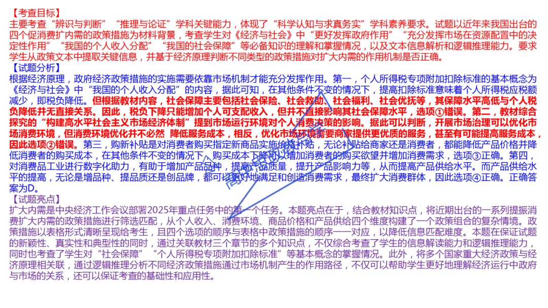 【真题解析可视化】2025年东北三省一区高考政治试题与参考答案(辽宁、黑龙江、吉林、内蒙古)