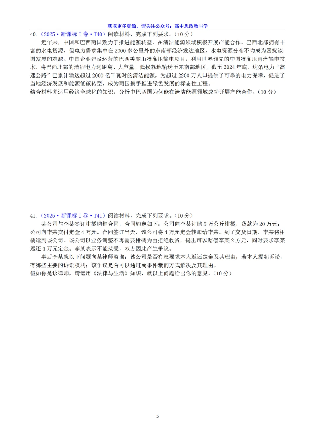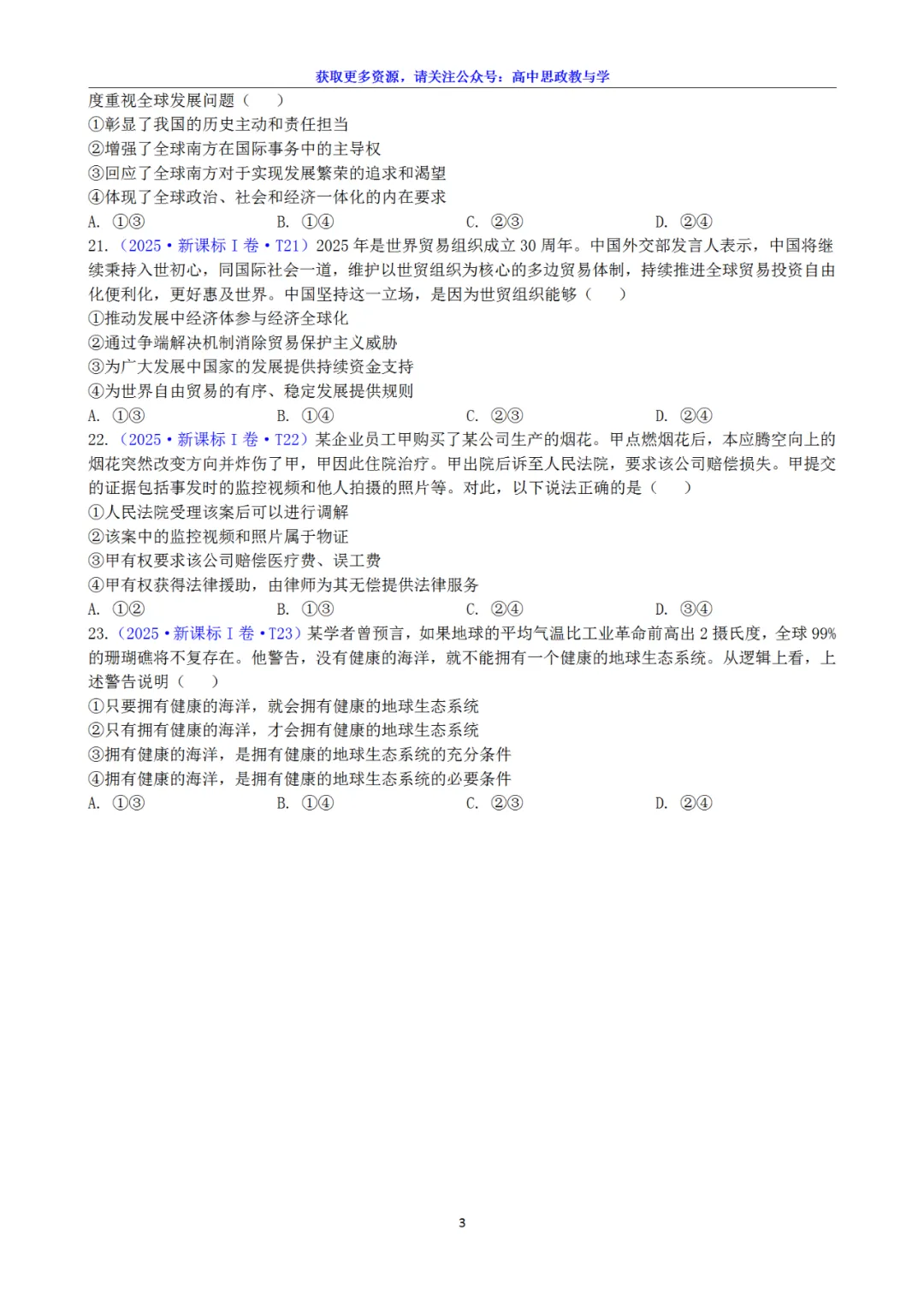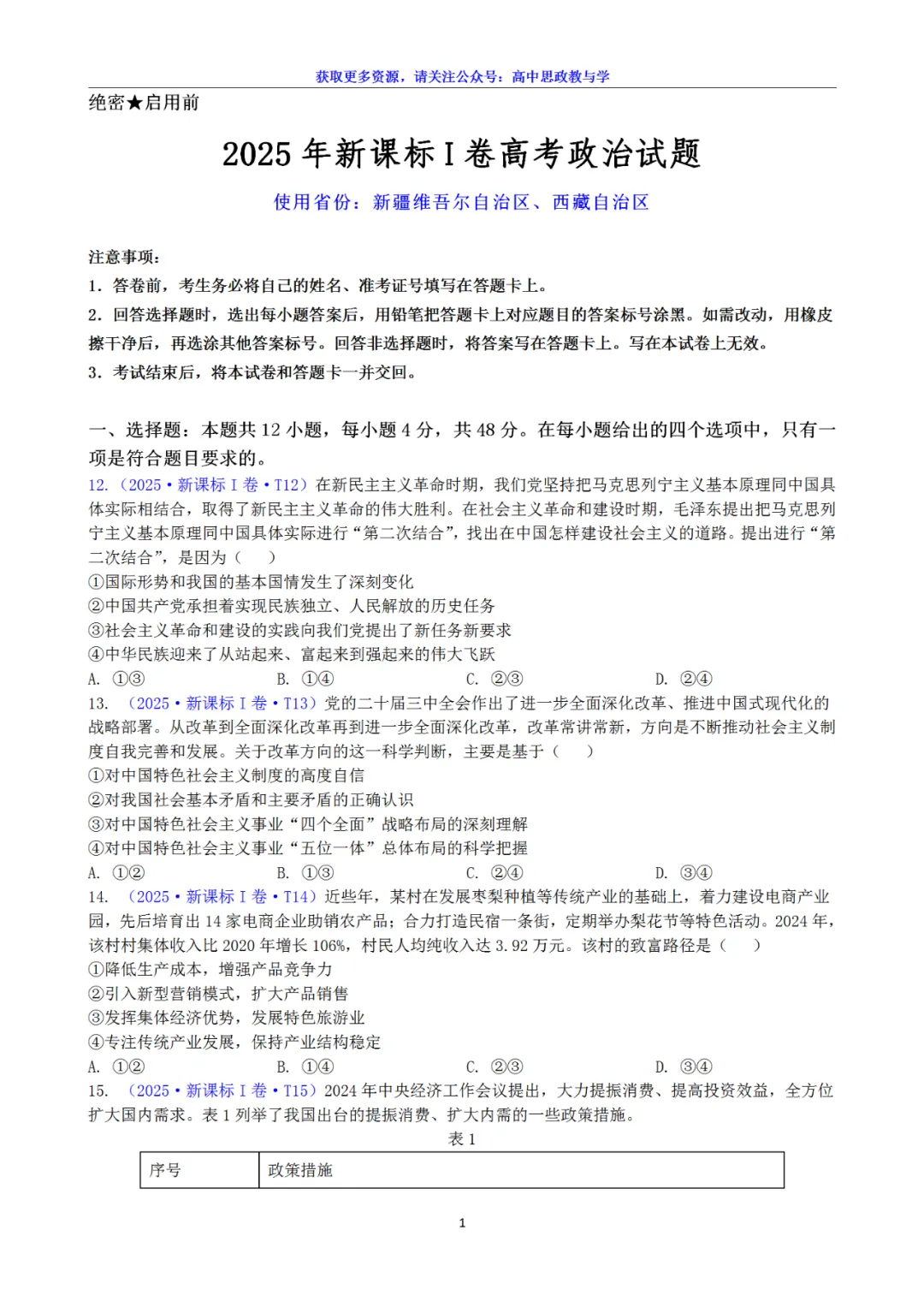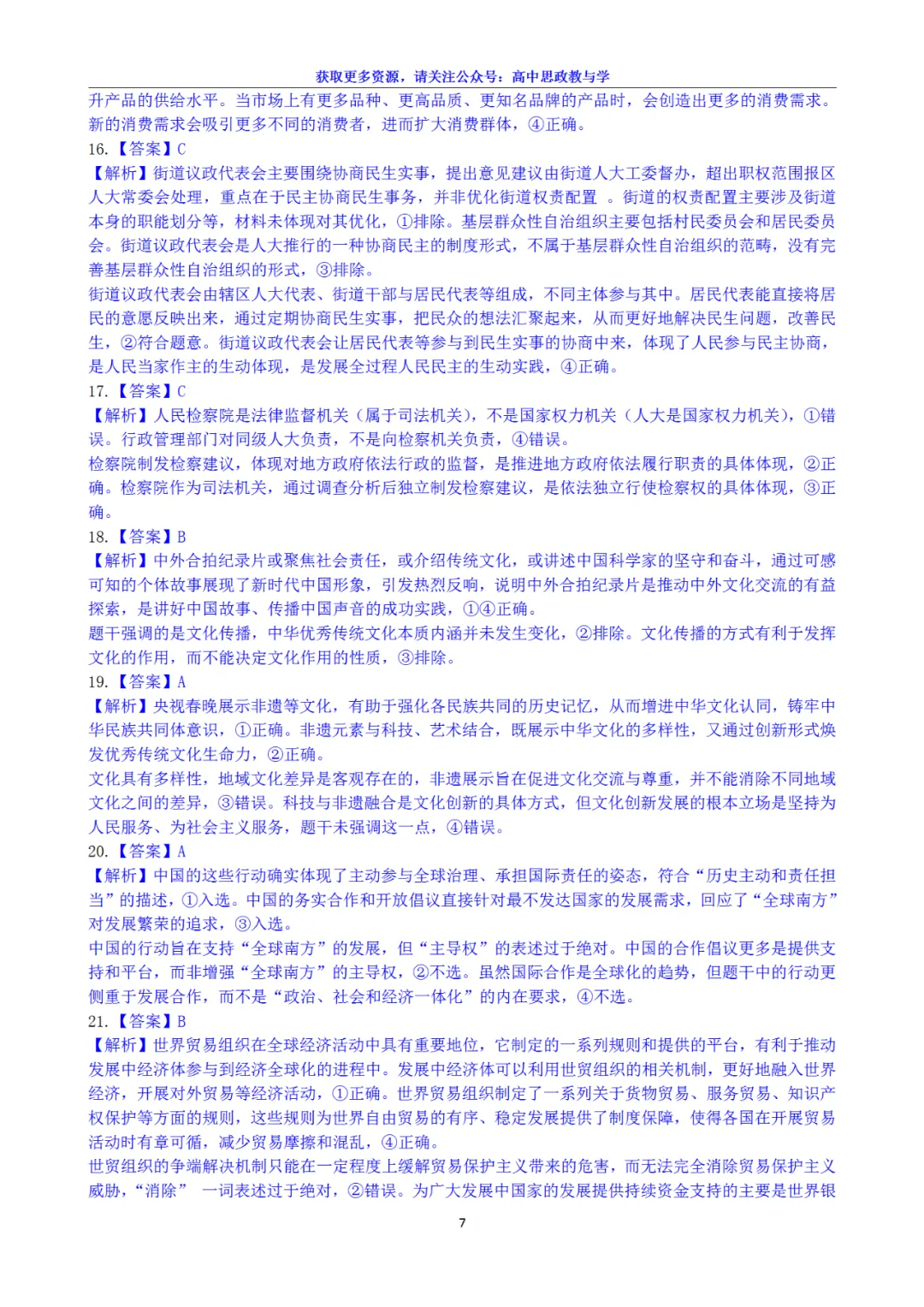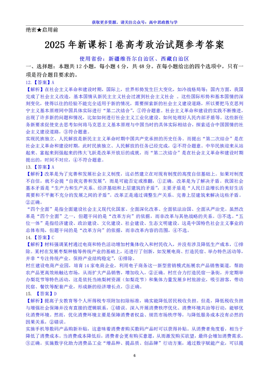 2025年(28省市22套)高考政治试题与参考答案(附WORD版免费下载)