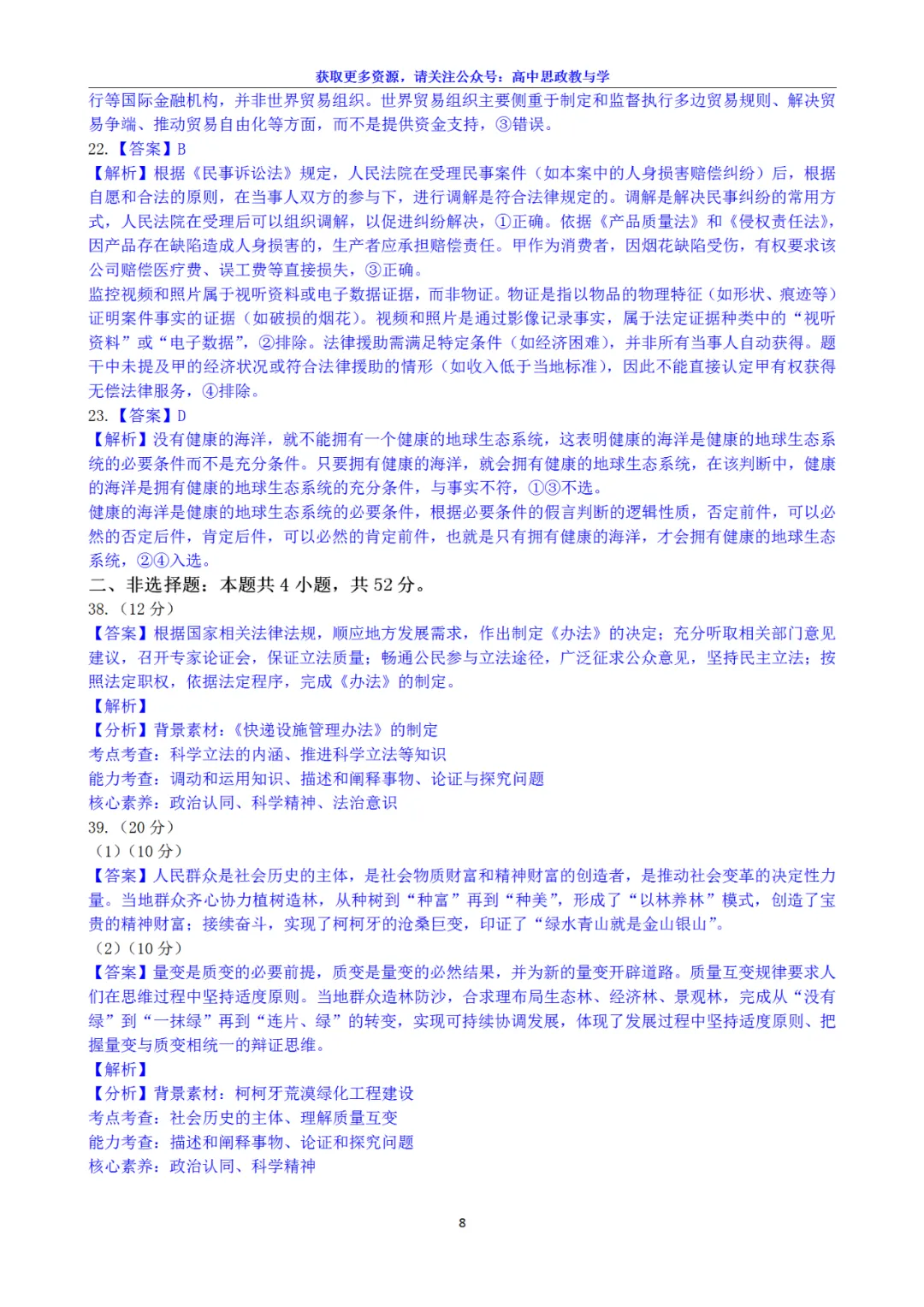 2024年广东省高考政治试题与参考答案【解析可视化PPT】(附试题Word版下载)