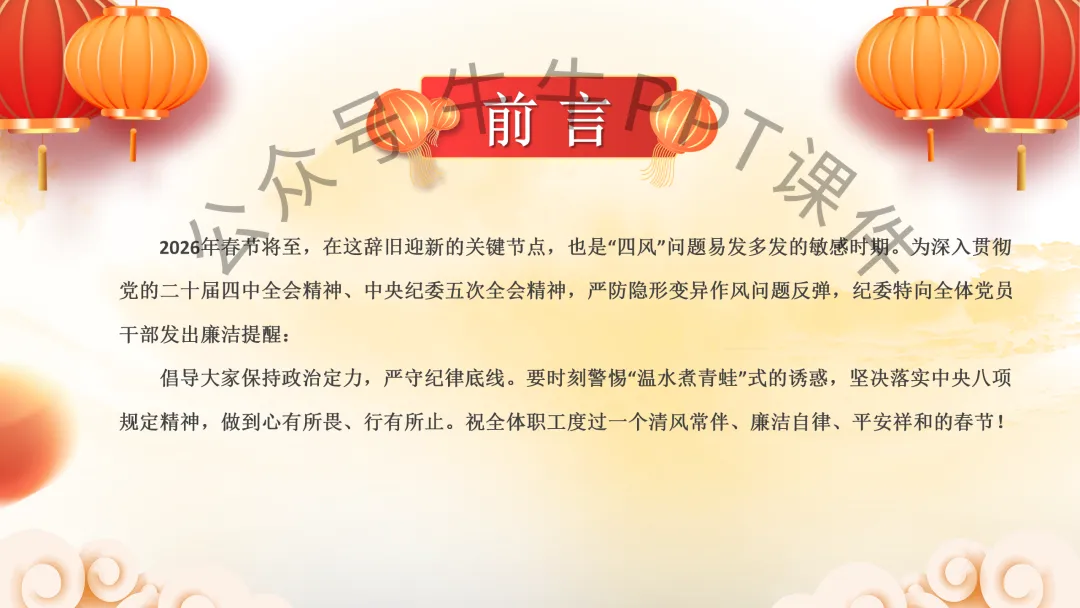 党组织书记春节前的廉洁党课(PPT+讲稿)