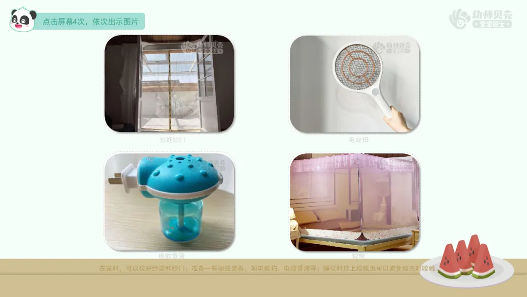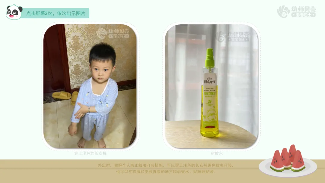 2.知道防蚊虫叮咬的办法,知道蚊虫叮咬后的应对措施。