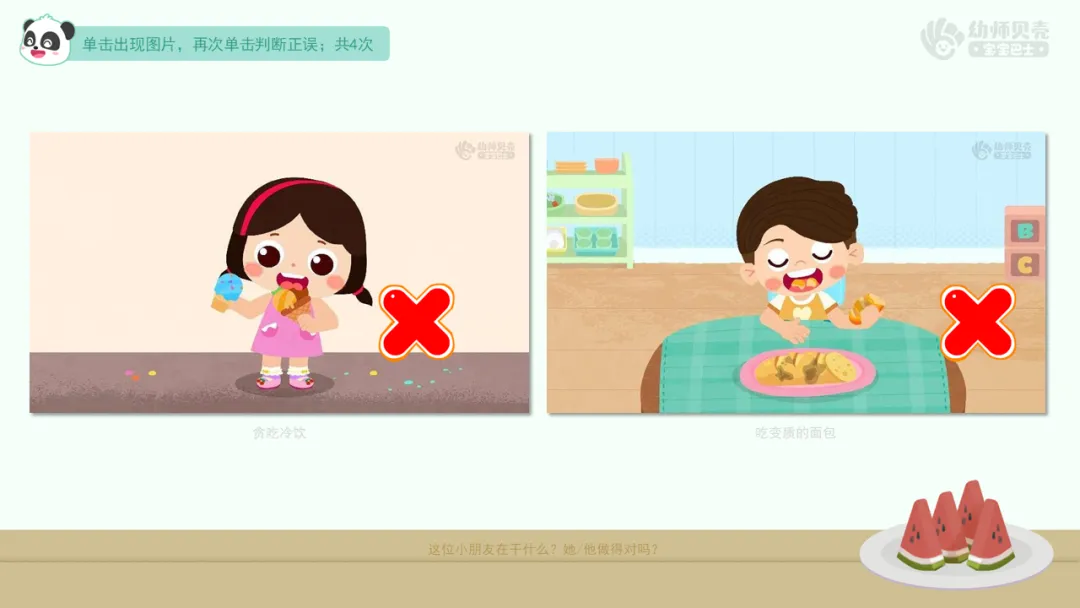 2.播放动画视频《冰激凌小姑娘》,知道过量吃冷饮对于身体的伤害。