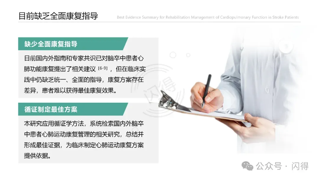 研究背景:脑卒中是我国成年人致死致残首要病因,约70%患者存在心肺功能障碍,科学的心肺一体化康复可提高耐力、降低复发风险,但临床缺乏统一指导方案。