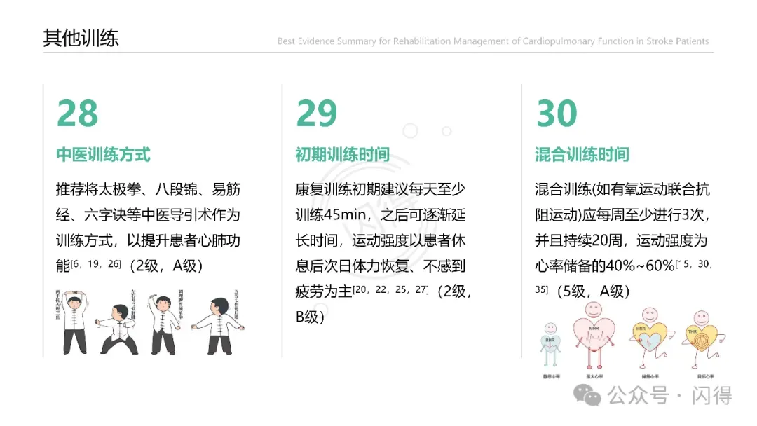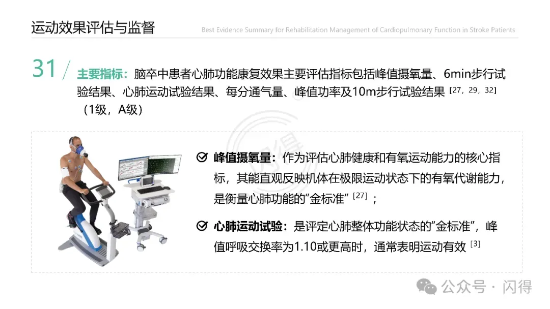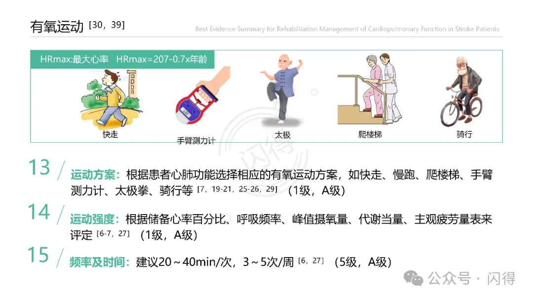 效果监督:监测峰值摄氧量、6分钟步行距离等,轻症患者运动时控制心率<最大心率85%~90%。