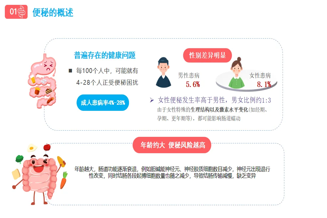 因为它把便秘的“来龙去脉”讲得太清楚了!从数据上看,每100个人中就有4-28人受便秘困扰,女性患病率是男性的3倍,65岁以上老人更是高危人群;