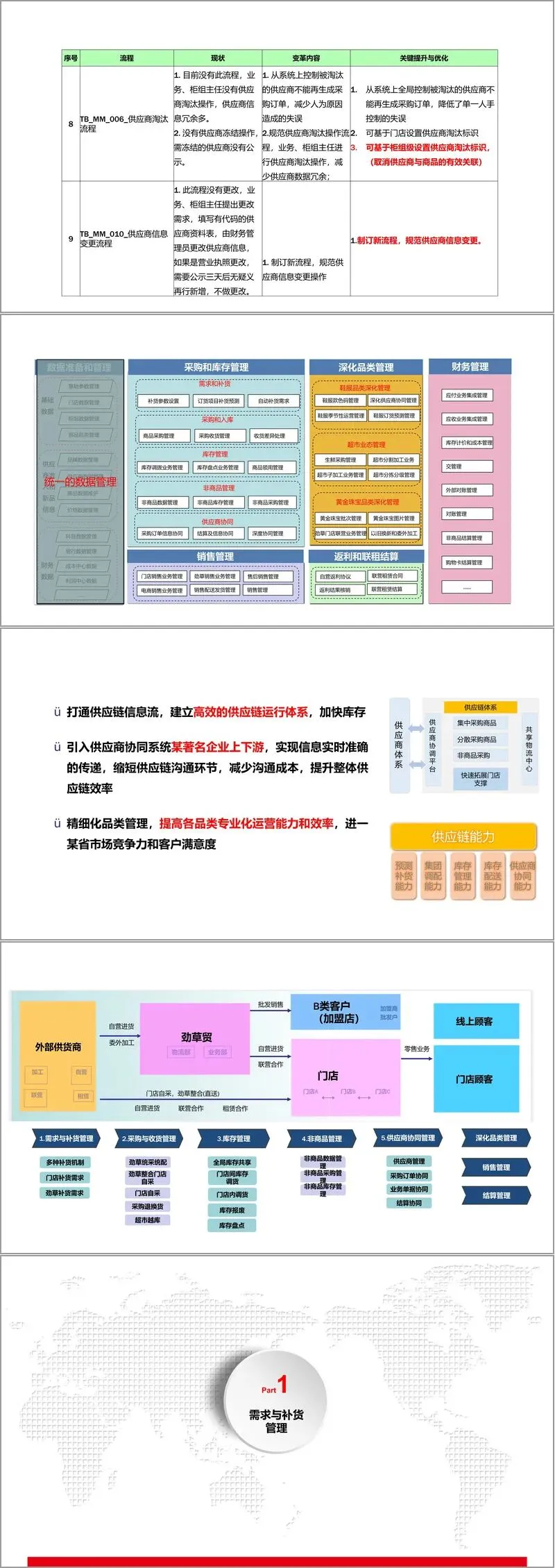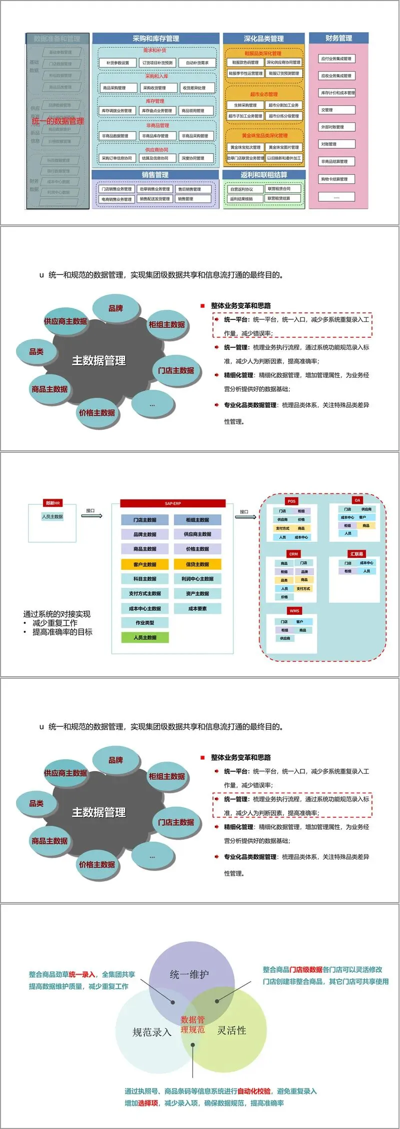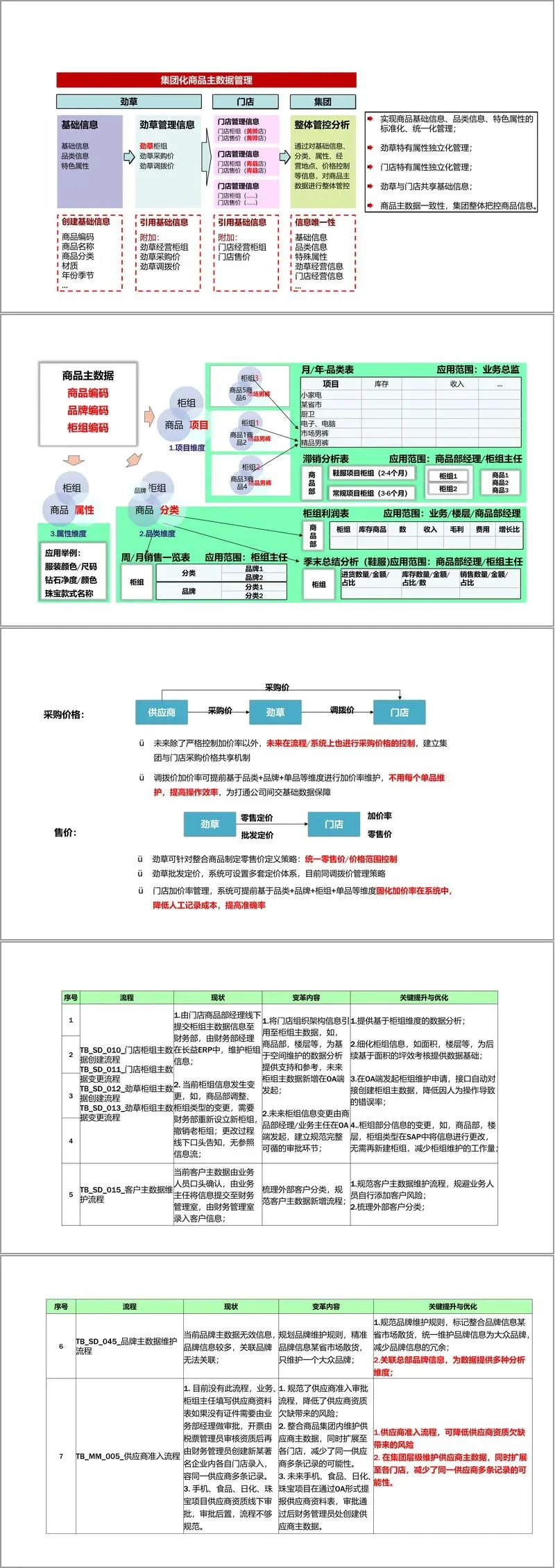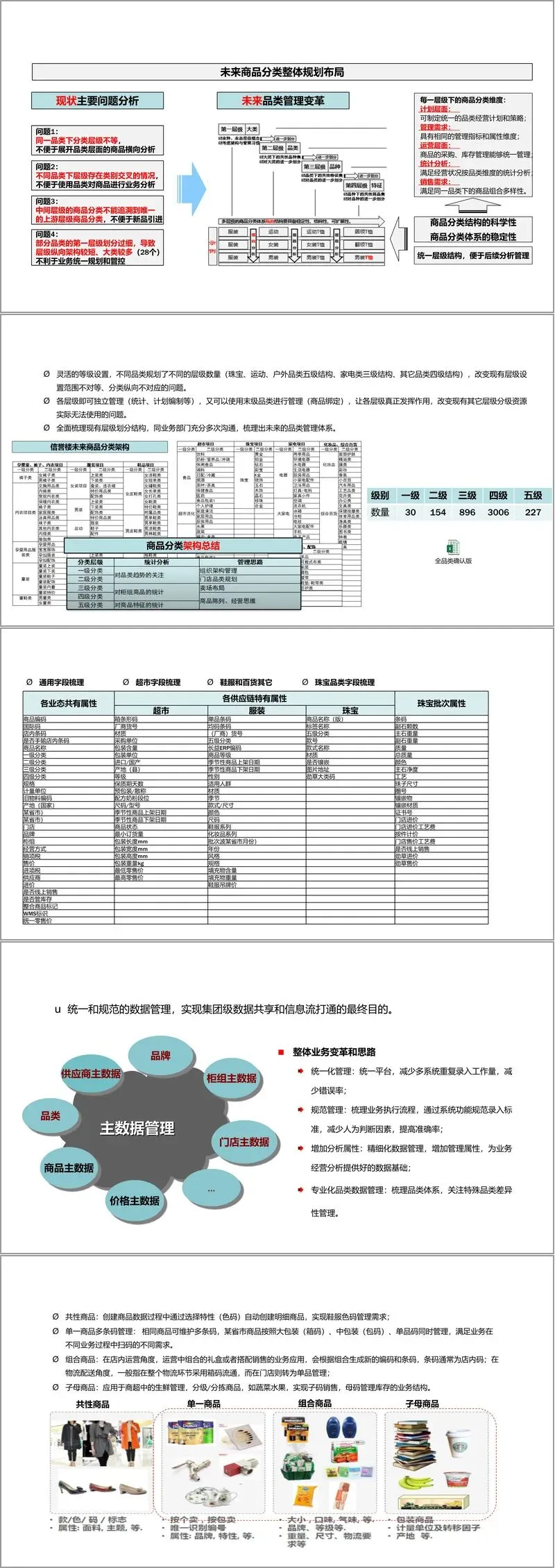 方案还明确了组织架构调整、系统对接、流程优化等实施路径,通过分步推进实现集团数字化转型落地,最终达成规范数据管理、优化库存结构、提升供应链效率、强化品类竞争力的核心目标。